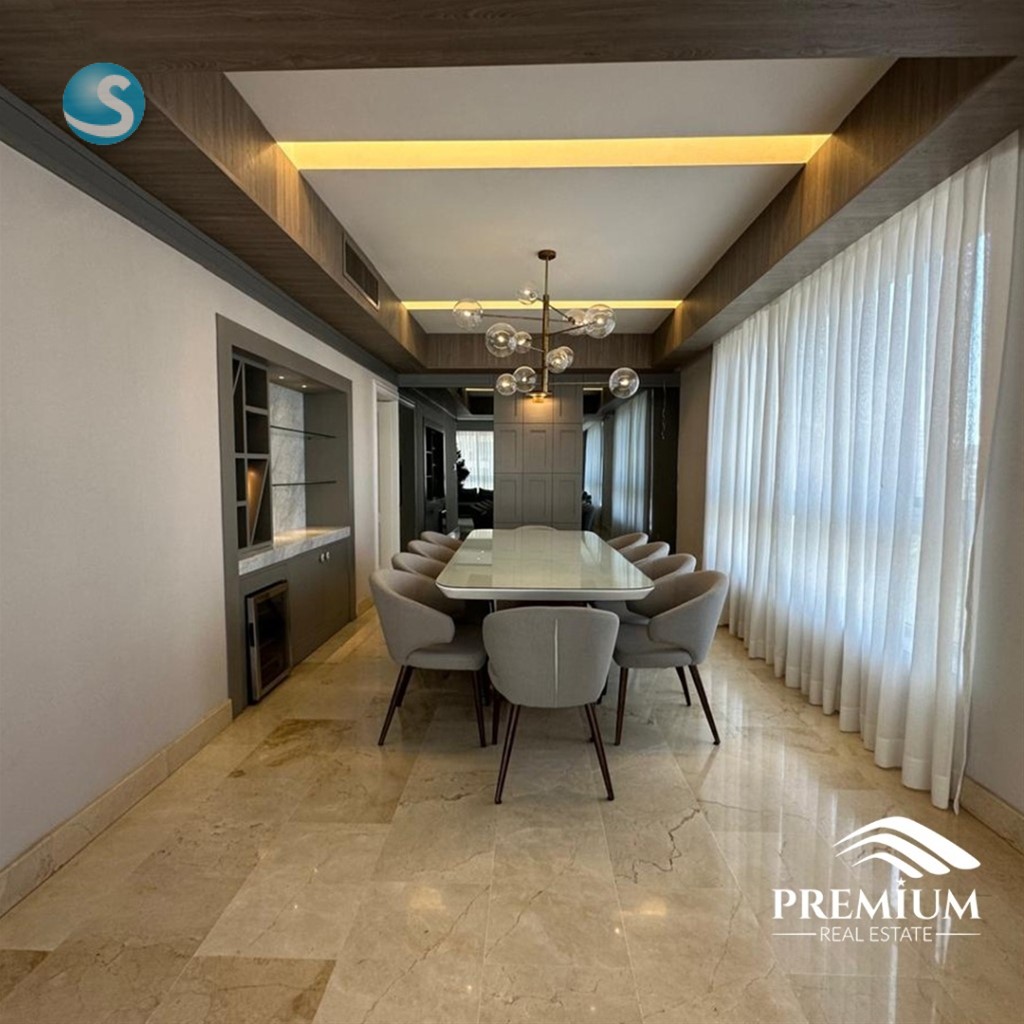 Piantini 1 Apto por nivel 7mo nivel 305mts 3 Habitaciones 3.5 Baños Recibidor Sala Estudio Comedor Cocina Fría y Caliente Family Room Área de lavado Cuarto de servicio con baño 2 Ascensores 3 Parqueos techados Locker Aire central incluido Shutters Pisos en mármol Área social Piscina Área de BBQ Área de niños Área lounge Gym Lobby Climatizado Precio de venta: US$640,000 Mantenimiento RD$25,000