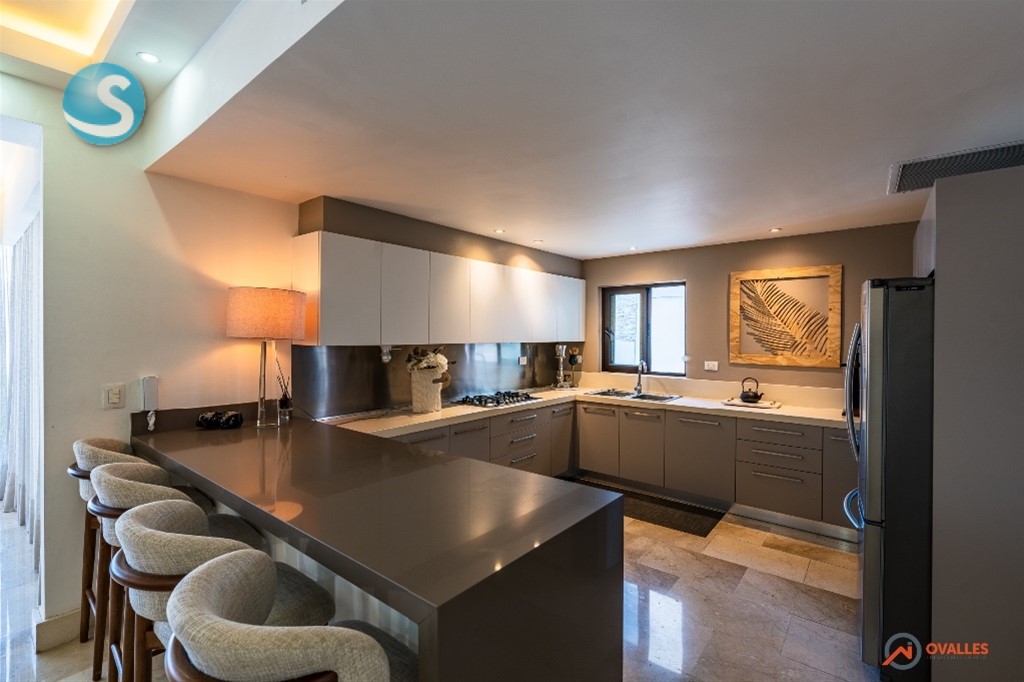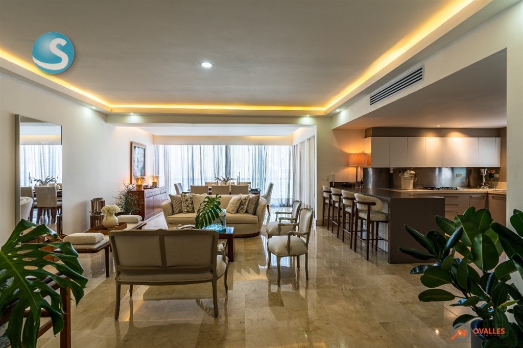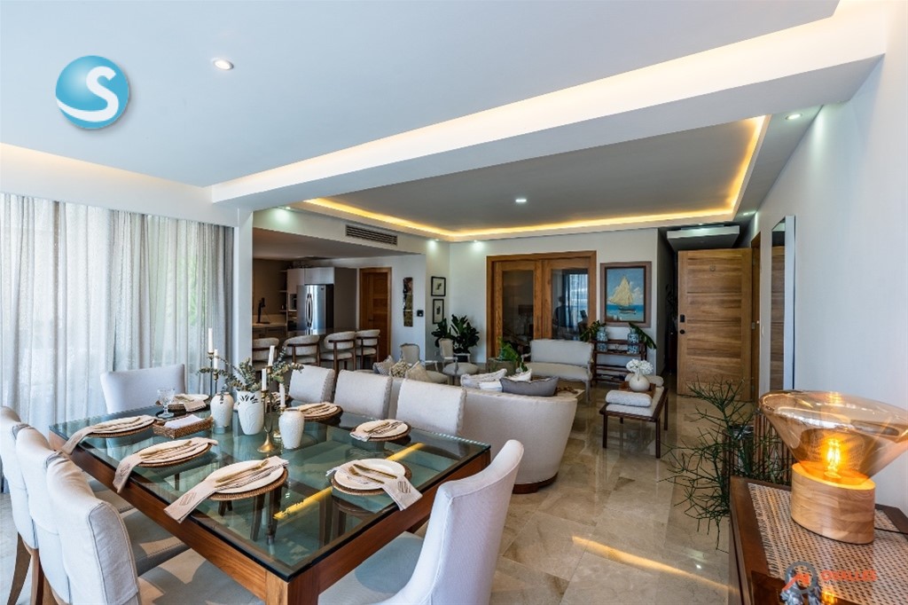 Alquilamos amplio apartamento finamente amueblado y decorado, en Piantini - Paraiso -231 Mt2 -3 Amplias habitaciones con baño y walking clóset en cedro -1/2 Baño visita -Sala -Comedor -Estudio -Cocina fría y caliente -Amplio balcón tipo terraza -Cuarto de servicio -Área de lavado -3 Parqueos paralelos en nivel -2 -Pisos en mármol -Madera en Roble -Aires acondicionado Lenox inverter en todas las áreas Amenidades de la torre: -Lobby a doble altura climatizado -3 Ascensores marca Kone -Salón de eventos con bar -Piscina climatizada -Área de juego de niños -Salón para choferes -Área carga y descarga -Parqueos de visita -Salón ejecutivo -Gimnasio -Sauna -Oficina -Terraza en piso 17 con jacuzzi y bbq -Sistema de tratamiento de agua Costo US$5,000 mantenimiento incluido