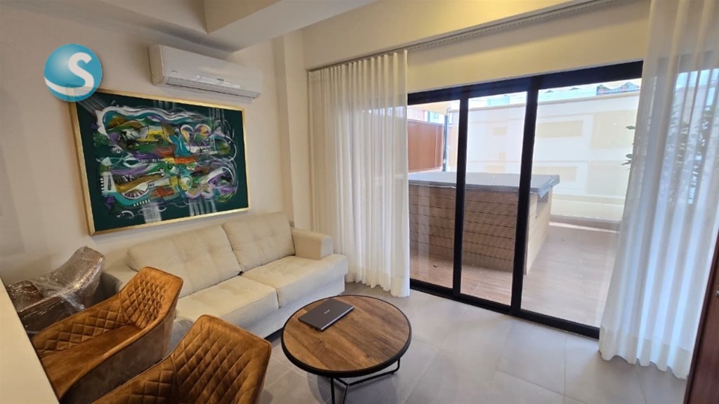 Alquilo o vendo en ??Piantini con terraza y jacuzzi privado y lo mejor Totalmente amueblado y nuevo a estrenar. 1 habitación baño y w/c 108 metros Piso 2 Sala Cocina Desayunador 2 parqueos Baño de visita Terraza privada con jacuzzi Permas incluidas. Mantenimiento incluido Gas común. Calentador Torre cuenta con: *Piscina *Terraza *kitchenette *BBQ *Gimnasio *Lobby climatizado *Seguridad 24h Precio :USD $1,500 Precio venta $269,500