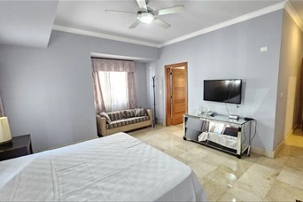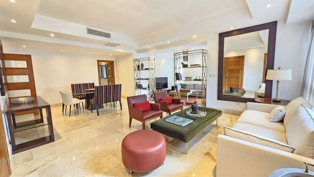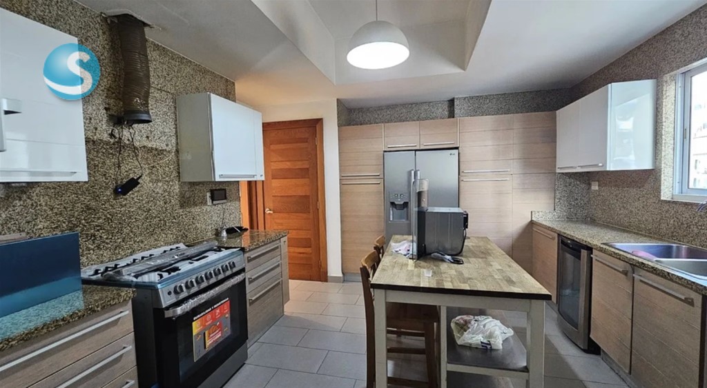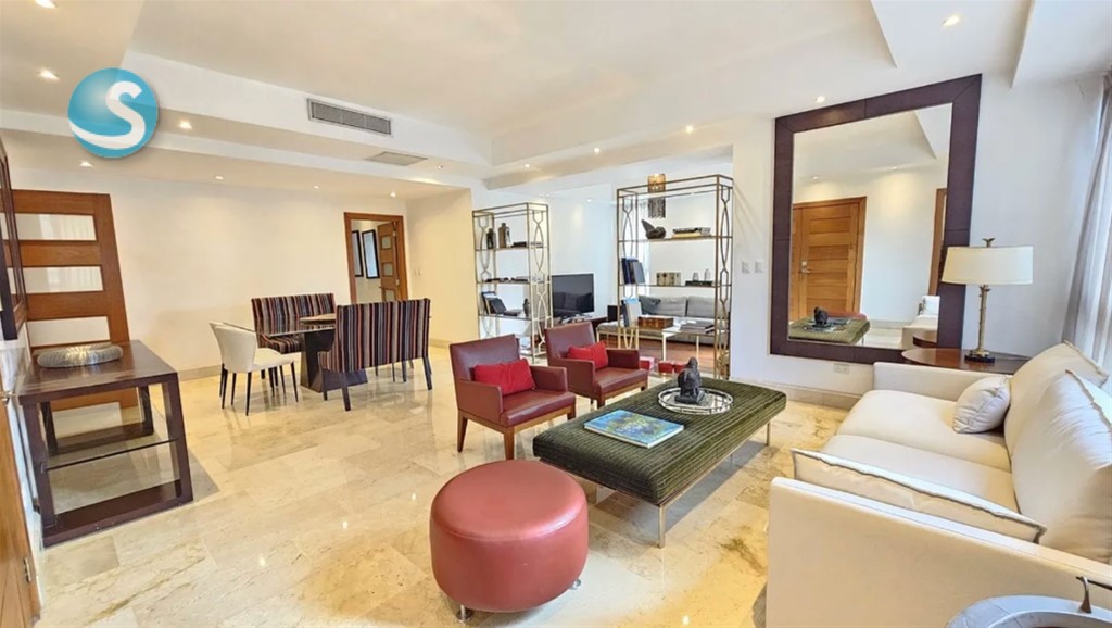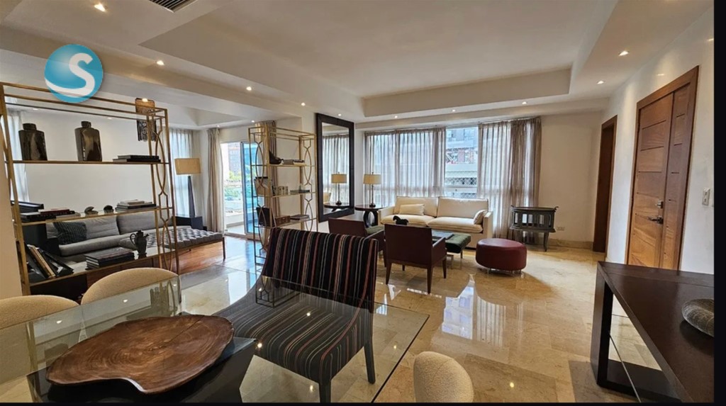 Apartamento en venta en Piantini amplio, con pisos de mármol, excelente ventilación e iluminación natural y espacios amplios. Torre de un apartamento por piso, con solo 9 familias y dos ascensores privados con llave, areas sociales, 3 parqueos, locker y pisos de marmol. Características del apartamento: - 3 habitaciones cada una con walk-in closets en cedro -3 baños completos en mármol - Baño habitación principal con doble ducha -½ baño de visitas - Estar familiar independiente - Estudio abierto (opción de cerrar) con balcón -Excelente ventilación e iluminación natural -Sala -Comedor -Cocina cerrada, amplia equipada con isla y vinera -Área de lavado amplia -Cuarto de servicio con baño -3 parqueos paralelos -1 locker -Incluye mobiliario y línea blanca (con vinera) Características de la torre: -Lobby -Seguridad 24/7 -Dos ascensores con llave de control acceso -Áreas sociales: Piscina, área de niños con grama artificial, salón multiusos climatizado, gimnasio equipado, Área de BBQ -Dos baños completos en áreas comunes -Cuarto de choferes -Dos plantas eléctricas de gran capacidad -Sistema de cámaras -Gas común -Pozo