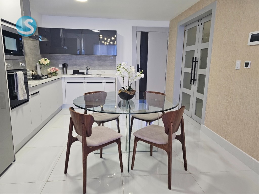Elegante apto en la zona más exclusiva del Distrito Nacional, Piantini. Modermo apto decorado con diseño arquitectónico anteporal, elegante, cálido y con una vista que te dejará sin aliento. 1 habitación súper amplia Estudio que se puede usar como habitación 2 baños Balcón Cocina Área de lavado Espectaculares áreas sociales para el disfrute de la familia Amueblado completamente Comunícate conmigo y así lo vamos a ver. Luxury Brokers 829-917-1107