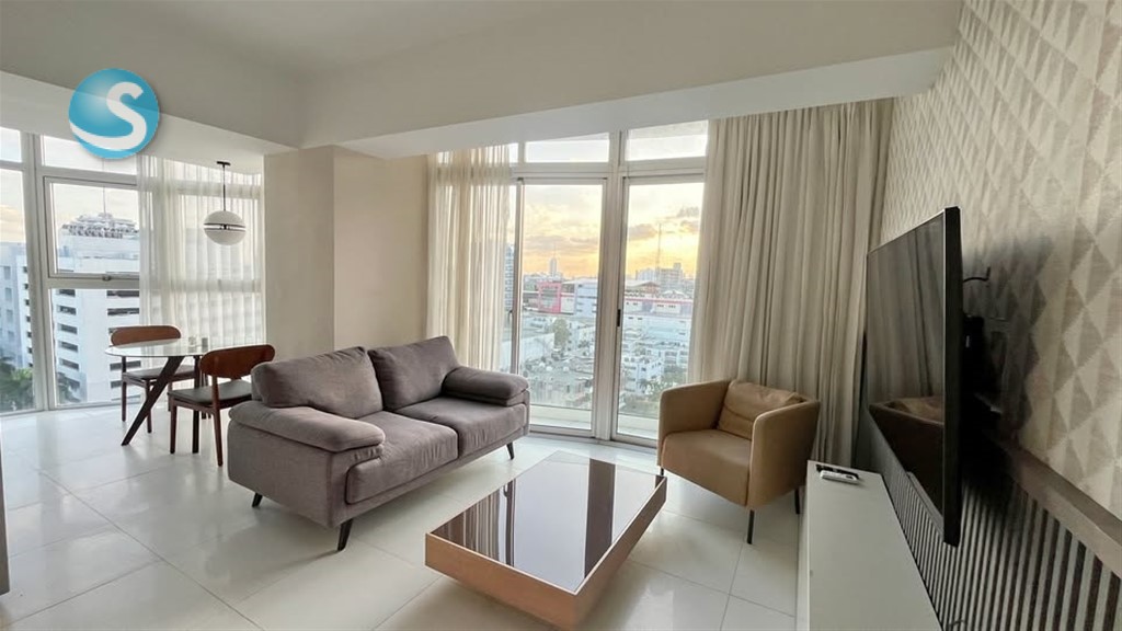 Ubicado en una de las zonas más estratégicas y caminables de Piantini. Torre con excelente mantenimiento, seguridad 24/7 y acceso rápido a las principales avenidas, restaurantes y comercios. Distribución: Incluye mantenimiento 1 habitación con baño privado y walk-in closet 1/2 baño de visitas Sala con abundante luz natural Cocina amplia con ventanales de piso a techo y diseño moderno con cristales curvos Piso alto con vistas despejadas Incluye: Totalmente amueblado Caja de seguridad 1 parqueo Amenidades: Piscina Gimnasio Dos ascensores Lobby bien mantenido Una opción cómoda y elegante para vivir en el centro de la ciudad, lista para mudarse. Disponible ahora – ¡Listo para mudarte! No realtors / no agentes