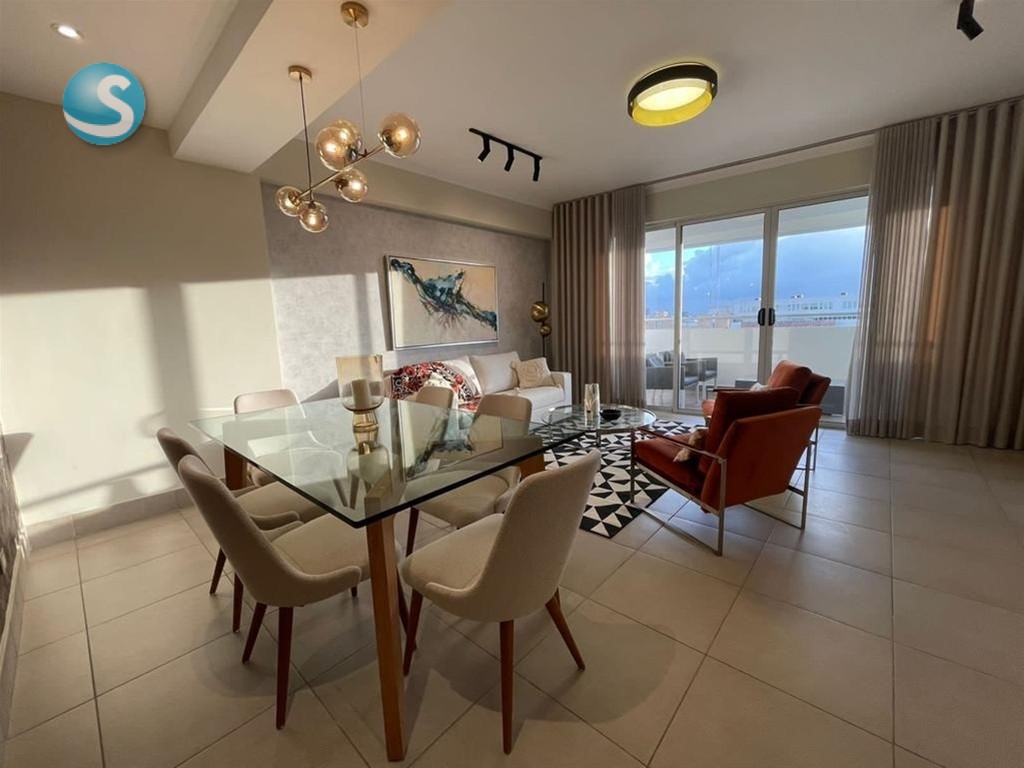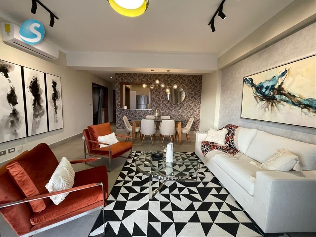 Apartamento en alquiler en Piantini amueblado Detalles del apartamento: -106 m2 -1 habitación + 2 baños -Estudio -Sala -Comedor -Balcón -Piso alto -2 parqueos paralelos -Medio bano para servicio Detalles de la Torre: -Lobby -Conserje -Doorman -Amenidades: Piscina, terraza techada y destechada y gym