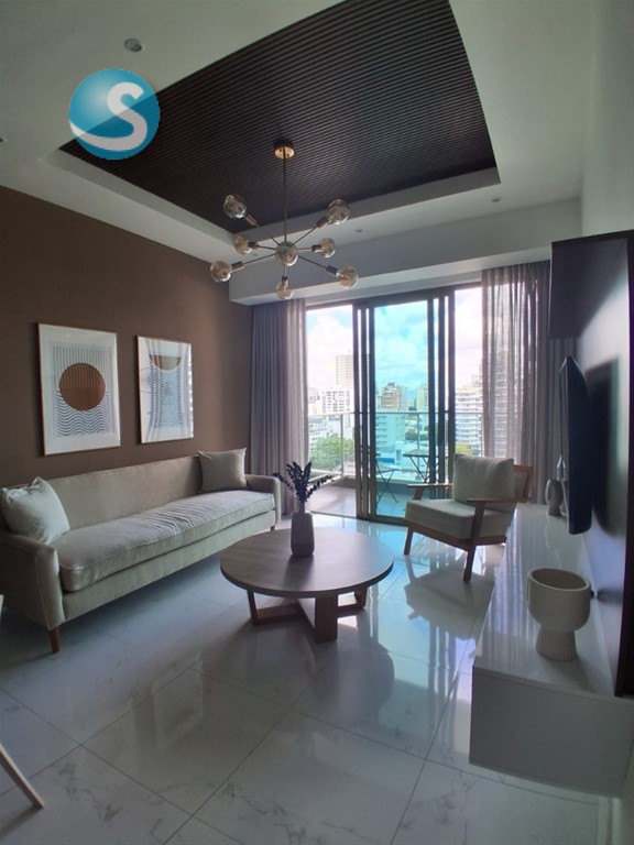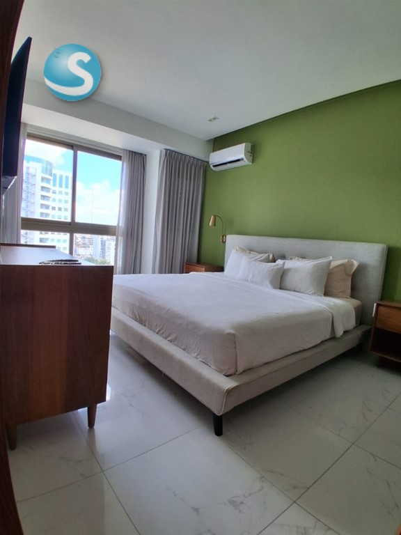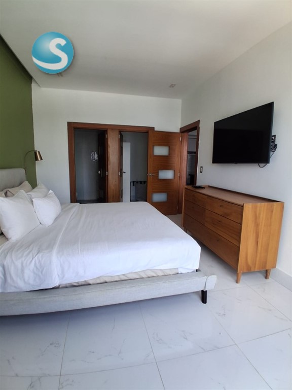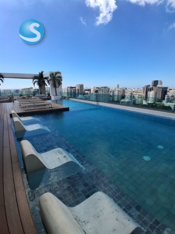 Apartamento Amueblado en piantini Precio de Alquiler US$ 1,500 mantenimiento incluido Cerradura inteligente 80 mt2 Nivel 11 Balcón 1 habitaciones C/ baño y W/Closet Sala /Comedor Cocina con desayunador Baño de visita Área de lavado con un baño completo Closet ropa blanca 1 parqueo Lobby Área social Piscina 6 Ascensores Gimnasio Gas común Ducto de Basura Vigilancia 24/7 Área de niños Cine Salón Multiuso Cerca de plaza comercial