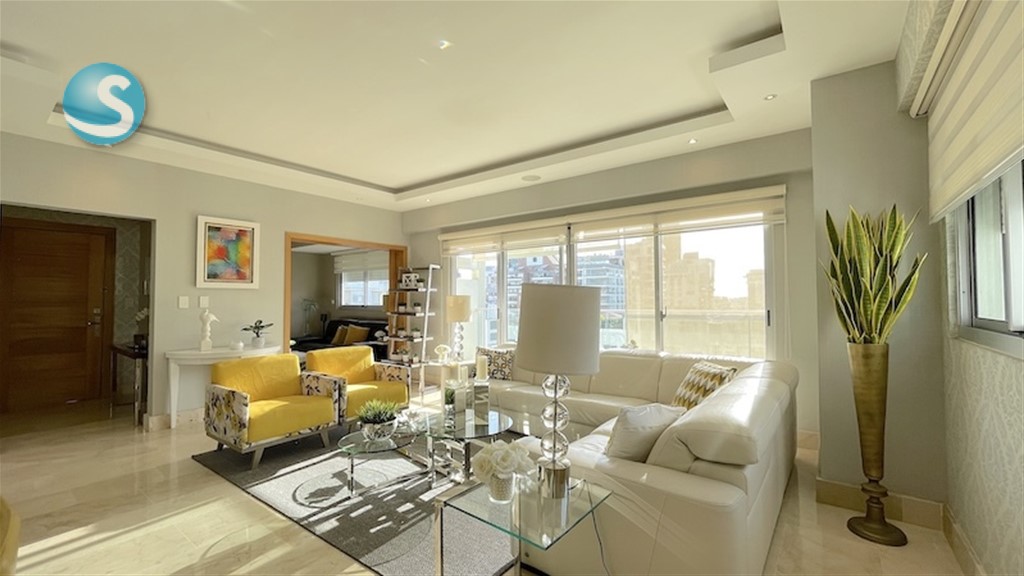 Alquiler apartamento amueblado en Piantini de Dos (2) habitaciones y Estudio. Torre Moderna con máxima seguridad y Areas comunes. ? Piscina ? Terraza amueblada ? Gimnasio ? Elegante lobby amueblado y climatizado ? 4 elevadores ? Planta eléctrica y Gas común Mobiliario de primera y bien elegido. Acabados en mármol y madera en Cedro ? Nivel alto con balcón frontal de vista despejada ? Dos (2) habitaciones. La principal con 2 walk-in closet ? 2.5 Baños ? Sala ? Comedor ? Cocina fría y Caliente ? Cuarto de servicio con baño ? 2 parqueos paralelos techados ? Locker ? Piso 12- 180 m2 de construcción ? Shutter eléctricos ? Aires acondicionados ? Cortinas y lámparas ? Cuadros y accesorios ? US$3,000 con el mantenimiento incluido. Disponible para mostrar a partir del 1ero. De marzo Renta mínima de un año ID: EB-SD1058 Para más información y fotos de esta propiedad visite: https://www.hazimrodriguez.com/property/alquiler-apartamento-amueblado-en-piantini-dos-2-habitaciones-y-estudio?agent=belkis0 Síguenos en Instagram: https://www.instagram.com/inmobiliariahazimrodriguez/