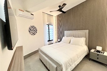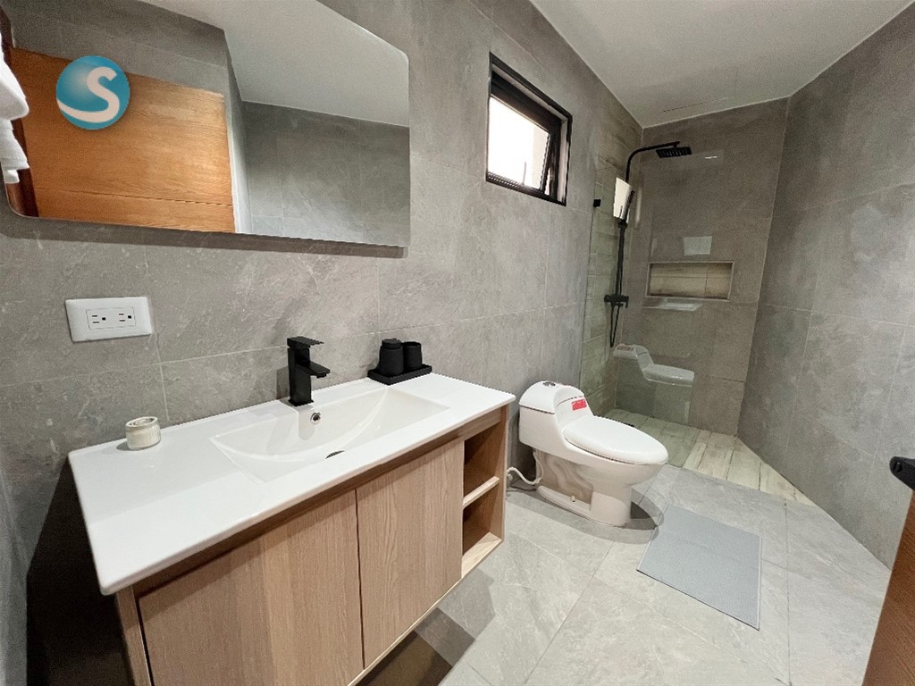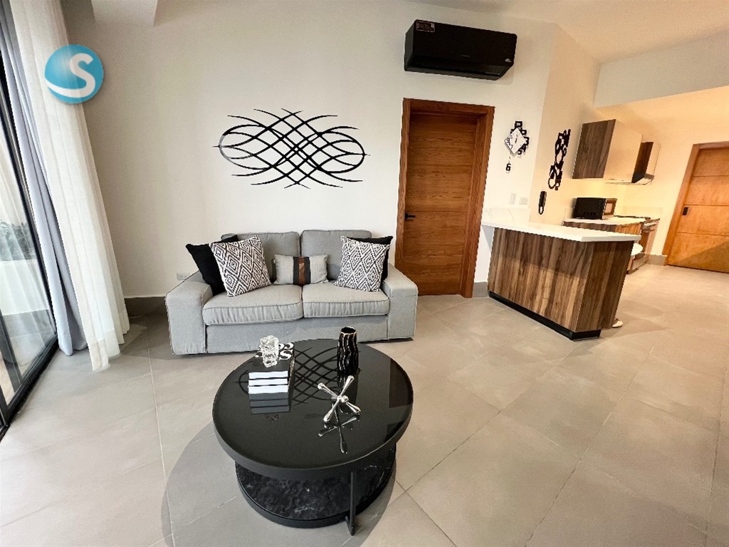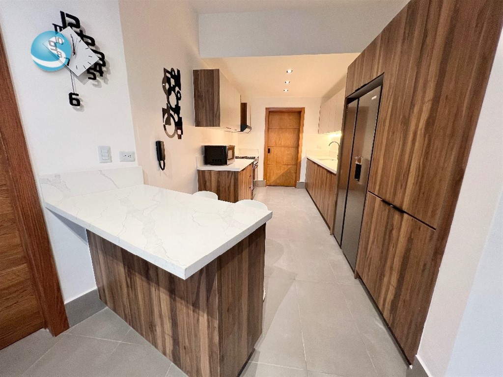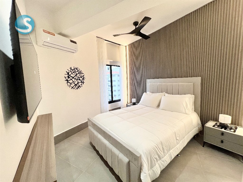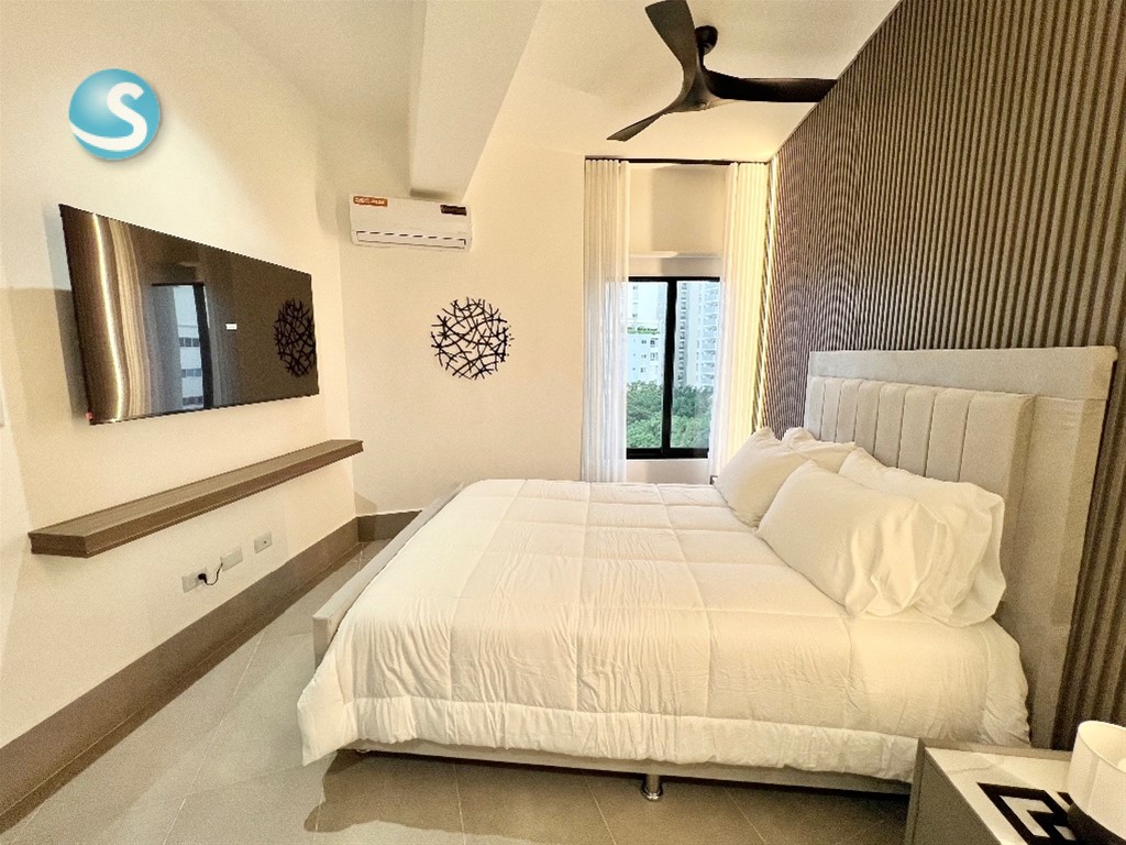 Se alquila apartamento amueblado de 1 habitación en Piantini 1 habitación con walk in closet y baño Sala Cocina abierta con desayunador Baño de visita Área de lavado Balcón con vista despejada 1 parqueo 2 ascensores Torre con áreas sociales Incluye línea blanca (nevera, estufa con horno, extractor, microondas, lavadora/secadora, calentador, 2 aires acondicionados, 2 televisores y abanico) utensilios de cocina (platos, vasos, cubiertos, juegos de ollas y sartenes…) y ropa blanca (sábanas y toallas)