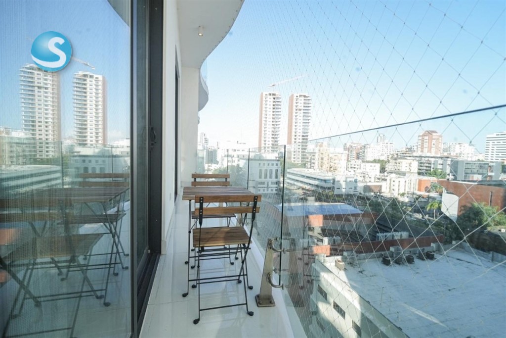 Alquiler amueblado en moderna torre de Piantini Piso 7B 130 metros Sala Comedor Cocina modular 2 baños y medio baño de visitas 2 habitación 2.5 Baños 2 parqueos Walking clóset en la principal Área de lavado Terminaciones Techos en Sheetrock Tope de granito la cocina Pisos en porcelanato Parqueos paralelos Intercom Características de la Torre Amplio lobby finamente amueblado Área de Piscina+ 4 Jacuzzi Área de BBQ Gimnasio, Sauna Amplio salón multiuso climatizado Área de juegos para niños 4 ascensores ultima generación Planta eléctrica full Equipo contra incendio Pre-instalación de aire Jacuzzi Gas común Precio de alquiler US$2,600 RAFA. S. y JUA.C.
