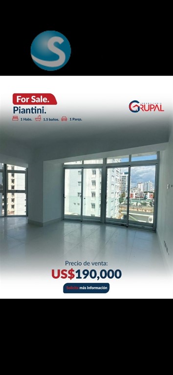 Apartamento en venta a estrenar en Piantini?? ?????????????????????????????? ?????? ?????????????????????? ??1 habitación con walk in clóset ??1 baño completo ??Medio baño de vista ??Sala ??Balcón ??Comedor ??Cocina ??Área de lavado ??1 parqueo ?????????????????????????????? ?? ???????????????????? ???? ???? ?????????? ??La torre de lujo ??Lobby climatizado y amueblado ??Piscina ??Gimnasio ??Sauna. ??Salón multiuso ??Área para bbq ??2 ascensores ??Planta full ???????????? ???? ?????????? US$190,000????