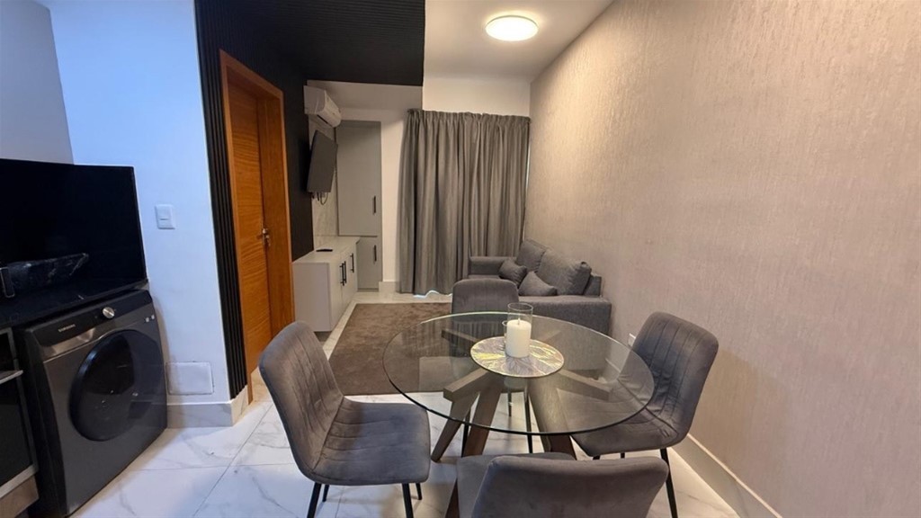 Bellísimo Apartamento en Alquiler ubicado en el corazón del exclusivo sector de piantini a pocos Mrs de los centros comerciales, colegios restaurantes de mas prestigio del país. 1 amplia habitación 1.5 baño sala-comedor, balcón frontal hermosa vista cocina con desayunador area de lavado, 1 parqueo y amenidades completas impresionante lobby
