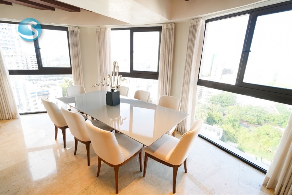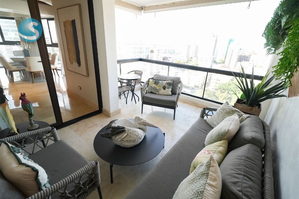 Piantini Amueblado Luxury 240 metros Piso 12 3 habitaciones 3.5 baños 3 parqueos Sala Cocina Comedor Área de lavado Cuarto de servicio Balcón Estar familiar Amenidades Terraza Jacuzzi Gym Sauna Lobby Piscina Área de juegos Precio de Alquiler Amueblado luxury US$4,500