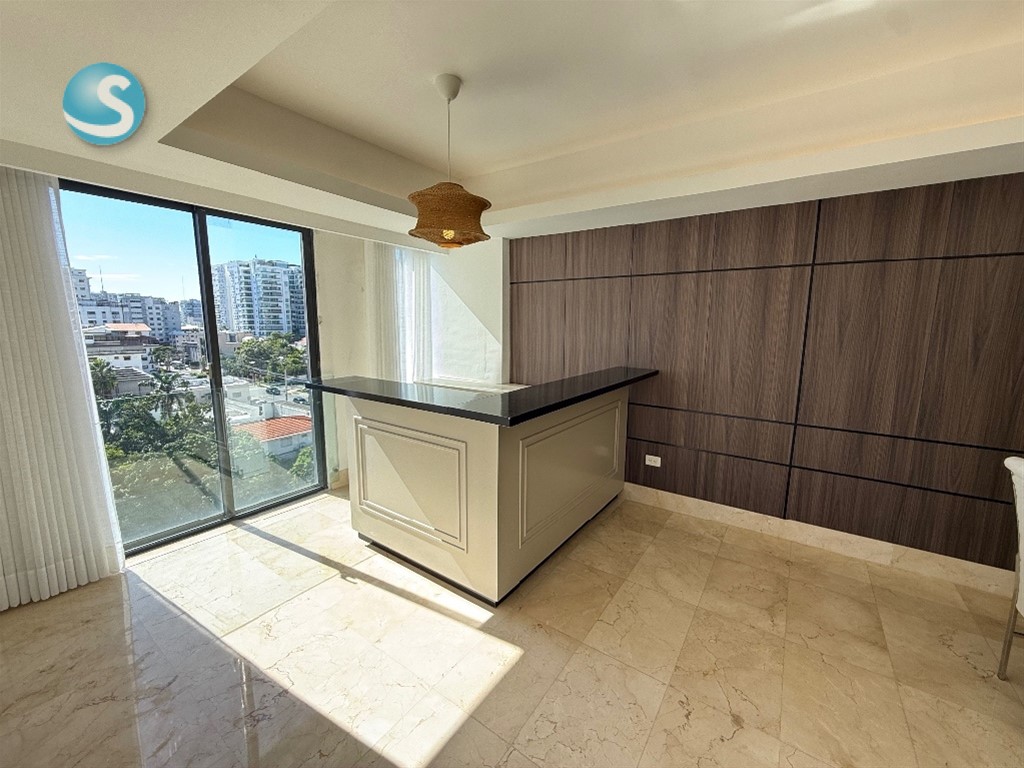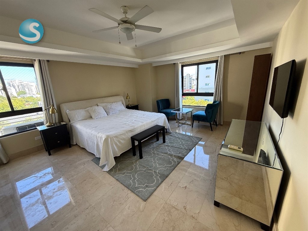 APARTAMENTO EN RENTA EN PIANTINI 7mo piso | Vista despejada a la ciudad ?? 3 habitaciones, cada una con su baño ?? Medio baño de visitas ?? Comedor ??Amplia sala ? Cocina caliente ?? Balcón ?? Walking closet ?? 2 parqueos ? Totalmente amueblado ? Aires acondicionados ?? 3 ascensores de última generación (1 de carga) ?? Amenidades de la torre • Elegante lobby de doble altura climatizado • Seguridad 24/7 • Piscina • Gimnasio • Cuarto de choferes • Locker ? ?? Precio de alquiler: US$2,900 AMUEBLADO ??230 mts ?? Ubicación: Piantini