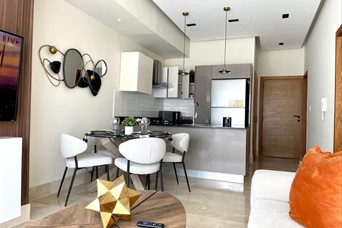 Piantini Amueblado Luxury 62 mt2 Piso 6 1 habitación 1.5 baños Área de lavado Sala Comedor Cocina 1 parqueo Área social Gym Piscina Sauna Terraza BBQ Precio de Alquiler Amueblado US$1,250
