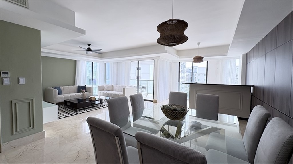 ??? Apartamento Amueblado en Alquiler en Piantini ?? Características del Apartamento: ??? Apartamento amueblado con línea blanca ?? 7mo piso ?? 201 m² ?? Recibidor ??? Área abierta de Sala, Comedor y Bar ?? Baño de visita ?? Balcón frontal – orientación sur ??? Cocina cerrada ??? 3 habitaciones, cada una con su baño ?? Habitación principal con walk-in closet ?? Área de lavado ??? Cuarto de servicio con baño ?? 2 parqueos techados ? Terminaciones y Comodidades: ? Pisos en mármol ?? Madera preciosa ?? Cocina modular con tope de granito natural y buenos electrodomésticos ?? Ventanas corredizas de aluminio y cristal con cierre hermético ?? Calentador de gas ?? 2 elevadores ? Planta eléctrica full ?? Gas común con medidor por consumo ??? Lobby elegante ??? Seguridad 24 horas ?? Portón eléctrico ????? Áreas Sociales: ??? Gimnasio equipado y climatizado ?? Piscina para nadar ?? Terraza con área de BBQ y Bar ?? Baños para damas y caballeros ?? Salón de choferes con baño ?? Precio de Alquiler: US$3,000 mensuales ?? Incluye mantenimiento. No consumo de Gas ID: EB-VD7592 Visitanos para mas detalles: https://www.hazimrodriguez.com/property/apartamento-amueblado-en-alquiler-en-piantini-bc094f9a-2d4a-4e51-b6ba-f77d58db1ceb?agent=AnaM1 Visitanos en Instagram: https://www.instagram.com/inmobiliariahazimrodriguez/