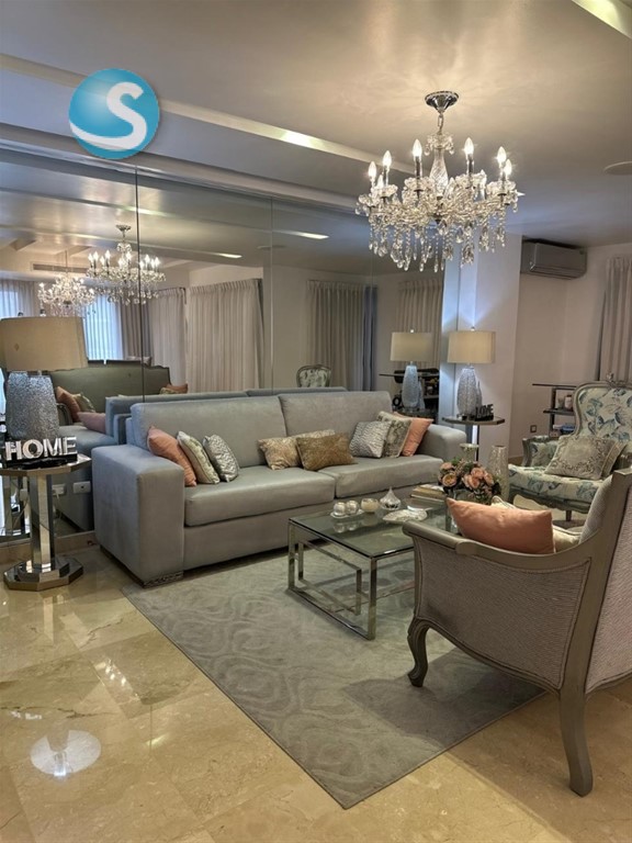 Elegante y espacioso apartamento de Alquiler, ubicado en Piantini, Torre de uso exclusivo familiar acabados de lujo y una excelente distribución para una vida cómoda. semi amueblado. * Recibidor elegante * Amplia Sala y Comedor * Moderna Cocina * Área de lavado y Habitación de servicio con baño * Ascensor privado con acceso * ½ baño de visita * Habitación principal con Walking Closet y baño * 2 Habitaciones secundarias, cada una con baño privado * Amplio closet para sábanas blancas * 2 parqueos lineales otras caracteristicas: * Pisos en mármol * Cocina en roble * Closets en cedro * Cornisas en Yeso * A/C completo * Amplio Lobby climatizado * Picuzzi * GYM * Salon multiusos Precio Alquiler US$2,800