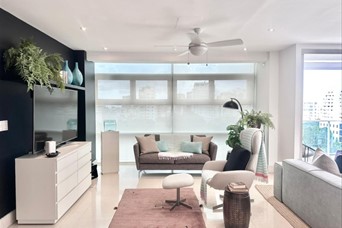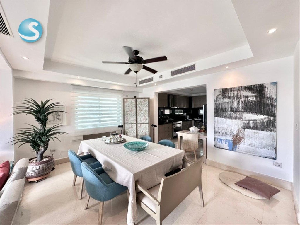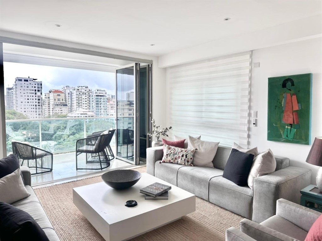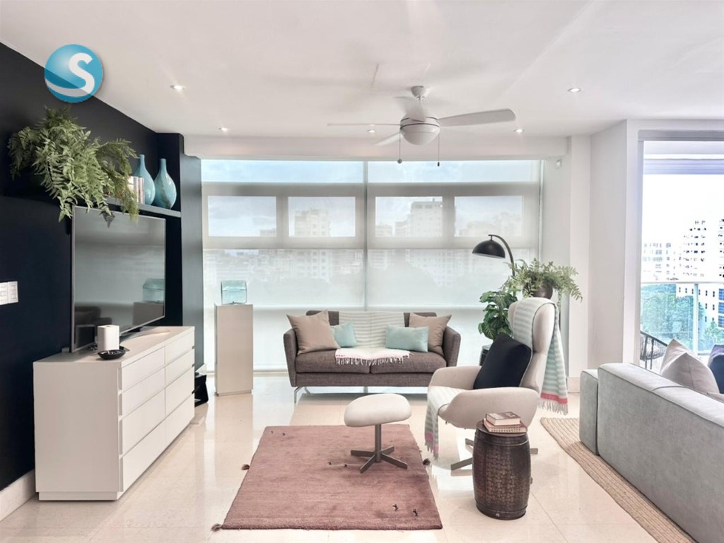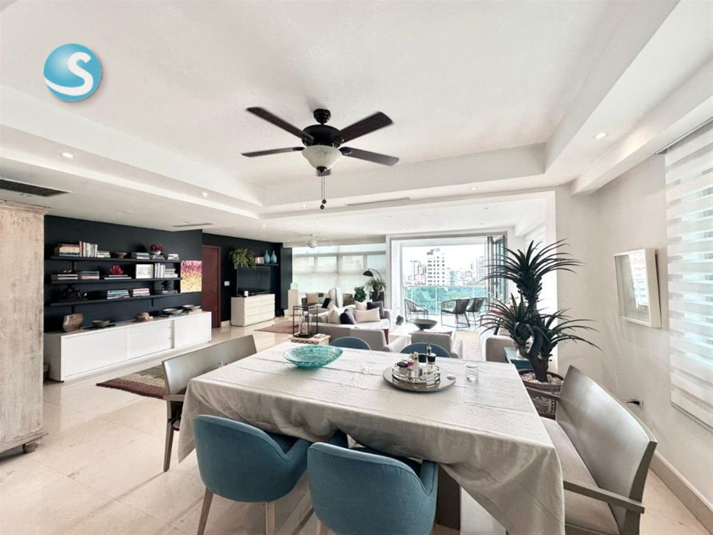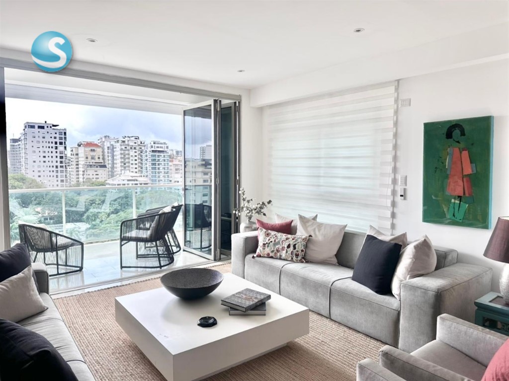 217 mts neto 282 metros total Tres (3) habitaciones, la principal con walk-in closet 3.5 baños Doble sala Balcón Sala y comedor Cocina abierta Área de lavado Habitación de servicio Closet de ropa blanca Parqueo paralelo Amenidades: Piscina Gimnasio Salón multiuso Área infantil Área de BBQ Kitchenette Planta eléctrica Portón eléctrico Lobby climatizado Escaleras de emergencia -------------------------------------------------- Precio alquiler : Amueblado US$ 3,800 ( mantenimiento incluido ) ----------------------------------------------------