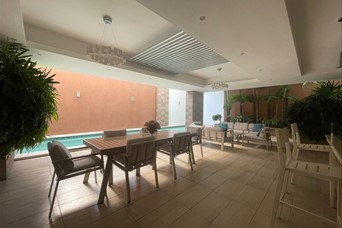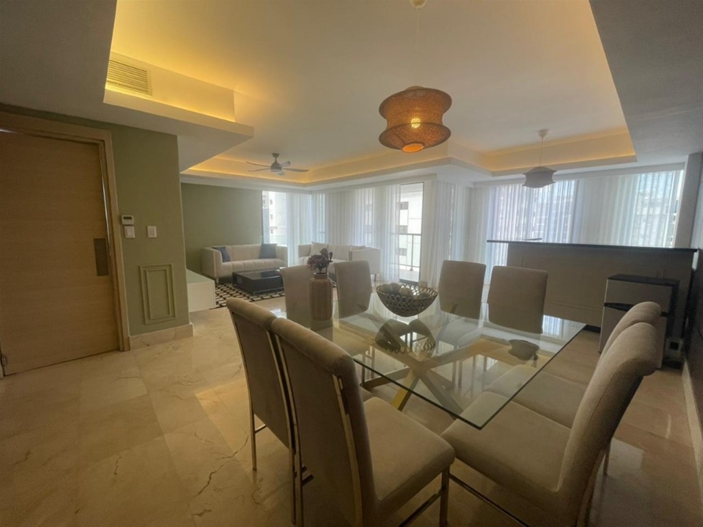 Bello Apartamento Amueblado en Alquiler con acabados de primera. Cada habitación con su baño privado y área de servicio. Cocina con modernos gabinetes y Balcon con vista despejada a la ciudad. El edificio ofrece excelentes áreas comunes: piscina, gimnasio y área de reuniones. Ubicación ideal, cerca de supermercado, clínica y restaurantes. Incluye dos parqueos. ¡Vive con comodidad y estilo!. Sector: Piantini Metraje: 230 MT2 Características : 3 Habitaciones con baño y W/C 3.5 Baños Sala Comedor Cocina Cuarto de Servicio completo Área de Lavado Balcon techado 2 Parqueos Aire Acondicionado central Características de la Torre: Gym Area de bar Piscina Area de choferes Seguridad 24/7 Acceso controlado Gas comun Planta electrica full Lobby climatizado 3 Ascensores Camaras de seguridad Deck Pantry MLS 26-493 Oficina