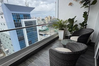 Alquiler en exclusivo sector de Piantini 143 mts 2 habitaciones 2.5 baños Sala Comedor Cocina Balcón Área de lavado 2 parqueos paralelos y techados Terminaciones Pisos en porcelanato Madera preciosa Tope de cocina en granito Amenidades y características de la torre Portón eléctrico Ascensor Luz 24 hrs Cámaras de seguridad Planta full Gimnasio Terraza común Precio de alquiler US$2,100 Información: Maria Canchica 809-995-5805 849-273-5805