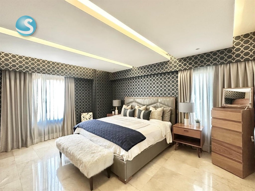 RENTA LUJOSA PIANTINI 280 m2 netos. 80 m2 terraza. 310 m2 totales 2 parqueos Locker 3 habitaciones. 3 baños completos. Habitación principal tiene walk in closet 2 baños de visita Sala Comedor Terraza ambientada y amueblada. Cocina Fría y Caliente *Totalmente amueblado y equipado con terminaciones de primera. *Precio incluye todo sin algunos detalles decorativos 4500 dolares ?? Amenidades del edificio: * ??? Gym * ?? Área de bar * ?? Piscina * ????? Área de choferes * ??? Seguridad 24/7 * ?? Acceso controlado * ?? Gas común * ? Planta eléctrica full * ?? Lobby climatizado * ?? 3 ascensores * ?? Cámaras de seguridad * ?? Deck * ??? Pantry