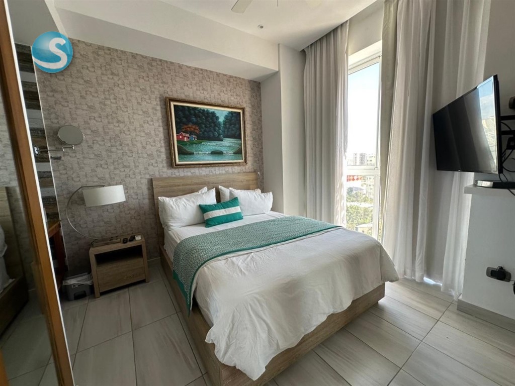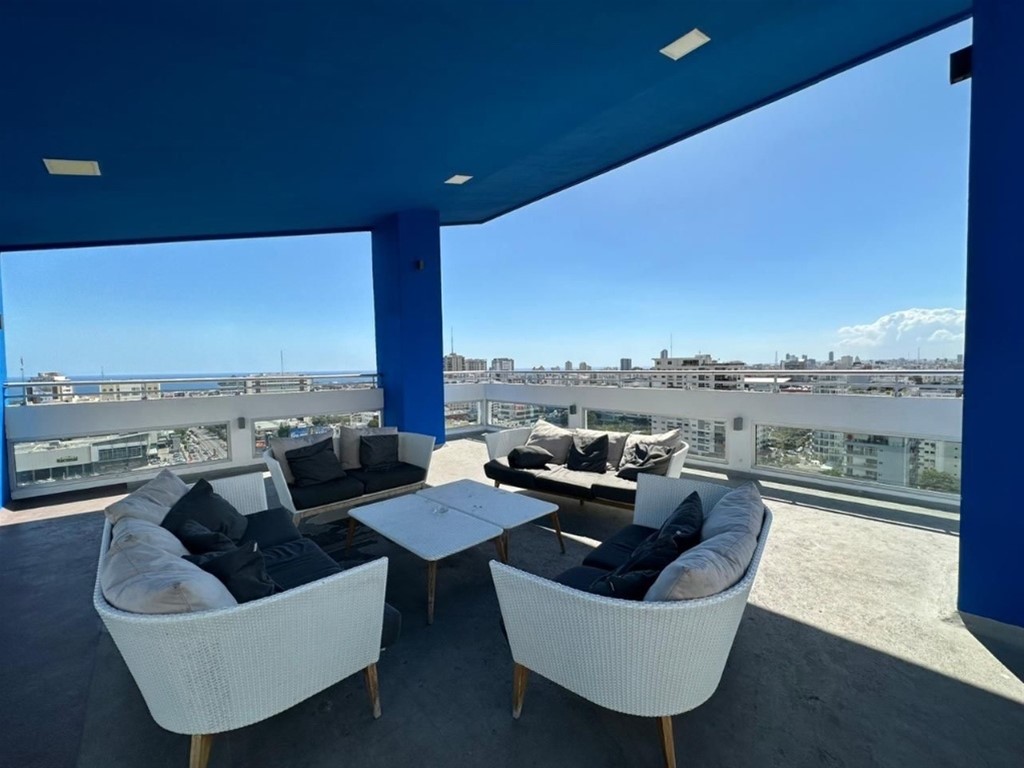 Piantini Amueblado full 70 Metros Piso 11 Balcón con Vista al Mar 1 Habitación con baño completo 1 estudio o Habitación con sofa cama y baño completo Área de lavado 3 Aires acondicionados 1 parqueo Amenidades: Lobby Amueblado Luxury Piscina infinity Gimnasio Terrazas techadas y destechadas Precio Alquiler Amueblado USD$1,250 Mantenimiento Incluido
