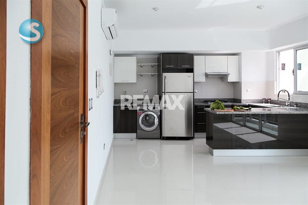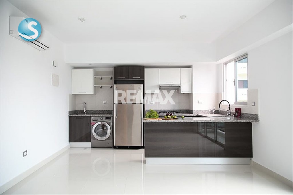 En el corazón de Piantini! Amplio y moderno apartamento en torre con áreas sociales y un mantenimiento impecable! - 1 habitación - 1.5 baños - Amplia sala - 1 parqueo techado - Ascensor - Linea Blanca incluida (Estufa, Nevera, Lavadora/Secadora, Extractor, Cortina y 2 Aires Split) - Piso 6 con vista a la ciudad A pasos de los mejores restaurantes de la ciudad! (Loretta, Peperoni, Don Pepe y otros).