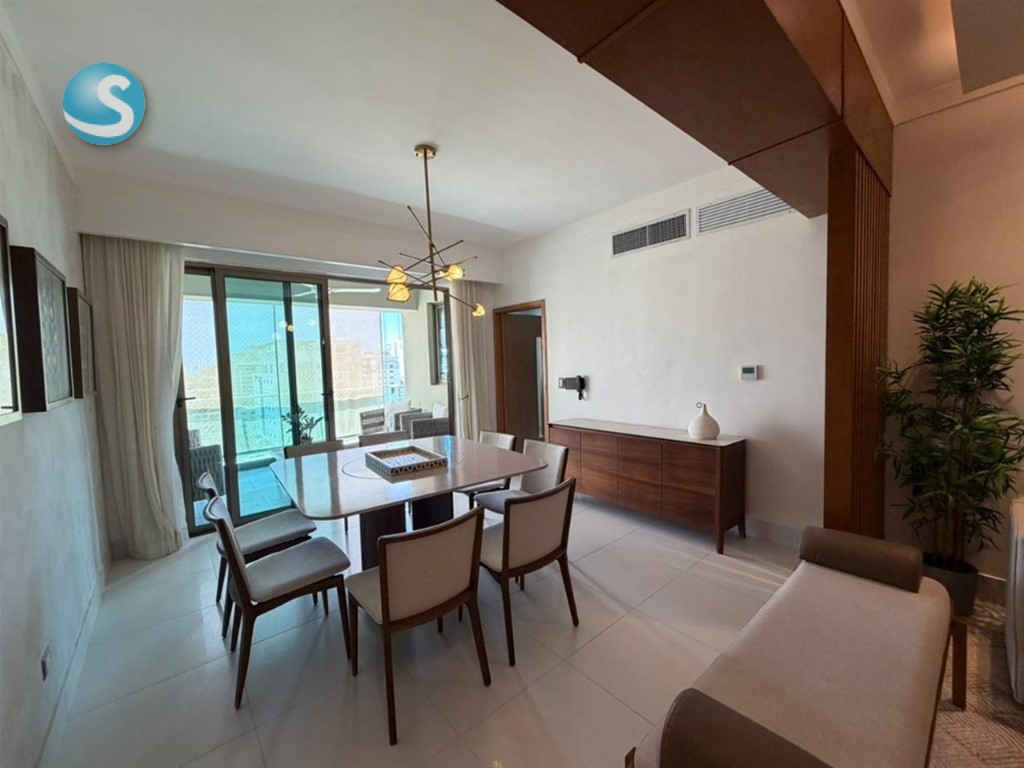 Piantini Amueblado full con Estudio y balcon tipo terraza 173 metros Piso 8 Balcón tipo terraza 2 Habitaciones 2.5 Baños Sala Estudio Cocina Comedor Area de lavado Cuarto de Servicio con Baño 2 Parqueos Locker Amenidades: Terraza Gym Ring de Boxeo Piscina Área de niños Sala de estar con vista a la ciudad Precio de Alquiler Amueblado US$2,100
