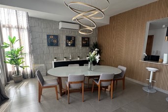 •Descripción 4to Nivel 160 mts2 2 habitaciones, principal con walk-in-closet 3.5 Banos Cocina Sala-comedor Balcón amplio 2 parqueo •Amenidades Seguridad 24 horas Lobby climatizado Asensores Planta eléctrica Escaleras de emergencia