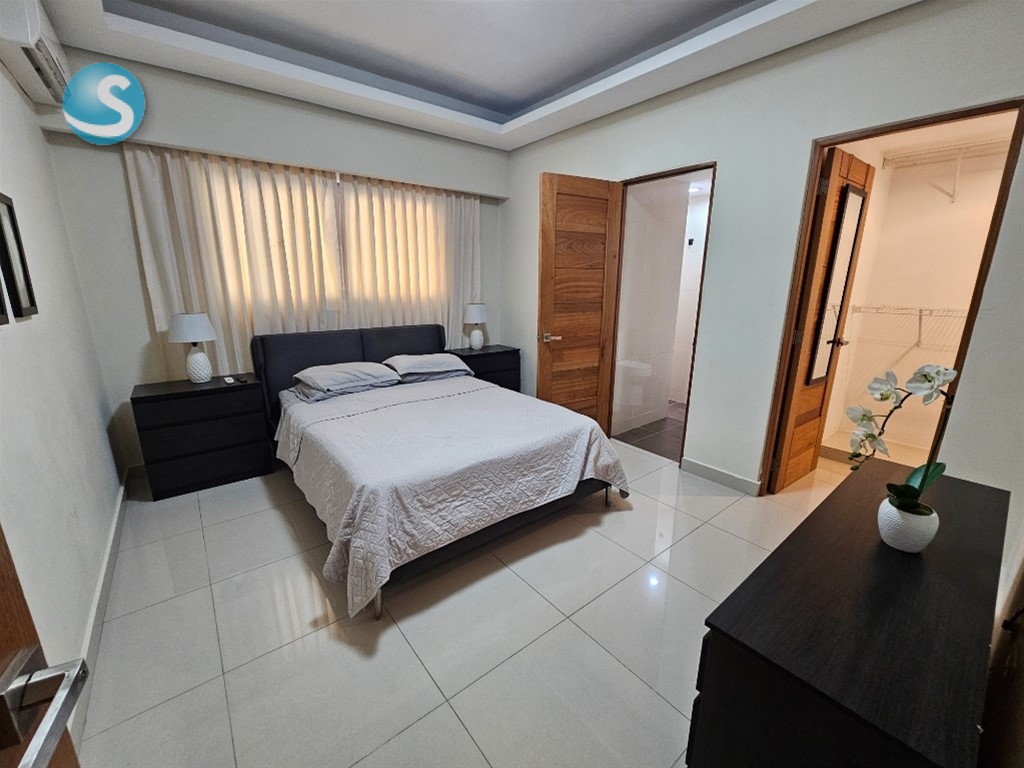 Alquilo apartamento amueblado en piantini 2 habitación con walking closet y baño recibidor medio baño sala cocina con desayunador balcon area de lavado 1 parqueo lobby gym salon y terraza multiuso