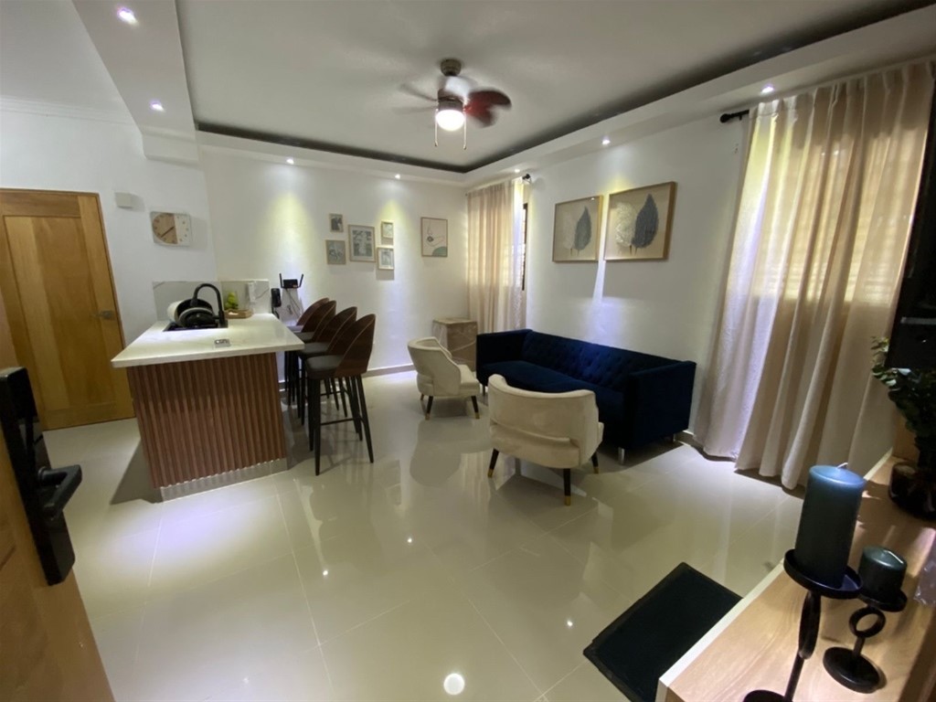 VENTA Apartamento a estrenar, ubicado en el sector Prado Oriental ?? • 2 habitaciones principal con Baño y clóset. • 2 baños. • Cocina con desayunador. • Sala/comedor. • Área de lavado. • 1 Parqueo techado Área social: • Jacuzzi • Bbq • Terraza Precio de venta: US$85,000.00 Precio amueblado: US$90,000.00 Lic. Jhoan García 829 958 5589 [email protected]