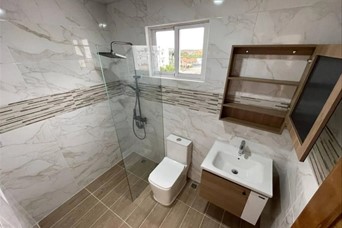 Venta de moderno y amplio apartamento en Prado Oriental 163 mts Piso 4 3 habitaciones 2 baños Sala Cocina Terraza Área de lavado 2 parqueos Terminaciones Pisos en Porcelanato Madera de Roble Jambas Tope de cocina en mármol Intercom Amenidades y características de la torre Portón eléctrico Terraza común Gas común Pozo Cisterna Precio de RD$9,500,000