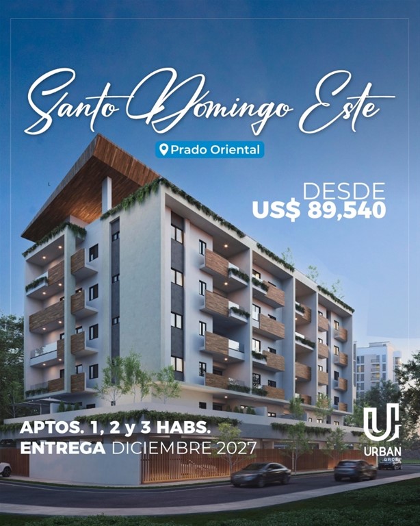 Santo Domingo Este - Prado Oriental Apartamentos de 1, 2 y 3 habitaciones Desde US$ 89,540 Características: • Sala • Comedor • Cocina • Picuzzi • Área de lavado • Terraza Común • Terrazas privadas en el 7mo ADICIONAL • Balcón • Área social • Terraza destechada y techada • Gimnasio • 2 parqueos • 1 parqueo (para los de una habitación) • Paneles solares ADICIONAL Reserva: US$500 Separe: 10% Durante construcción: 20% Contra entrega 70% Entrega: Diciembre 2027 Contáctanos: María Almonte ?? Cel.: 809-703-1742