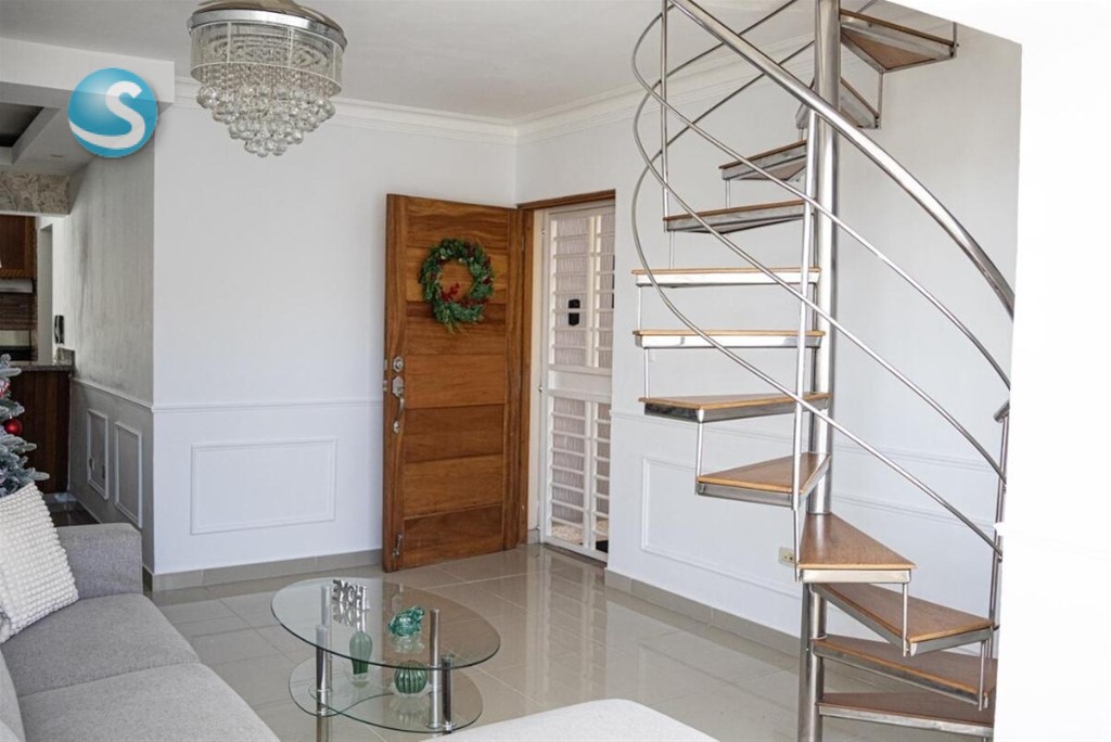 PENTHOUSE próximo a Prolongación 27 de Febrero A solo un minuto de supermercados, plazas y colegios. - Primer nivel: 110 m² - Segundo nivel: 38 m² - Total: 148 m² - 3 habitaciones - Habitación de servicio - 4 baños - Sala de estar - Terraza en el segundo nivel, vista panorámica - 2 parqueos Terminaciones - Pisos de porcelanato importado - Cerámica importada - Tope de granito Amenidades - Amplias áreas verdes y espacios de recreación - Acceso controlado para mayor seguridad - Gimnasio totalmente equipado - Área de juegos para niños - Cancha de baloncesto - Gas común - Salón para actividades y salón multiuso - Sistema de intercom Precio de venta RD $9,500,000 8293990815 laury ventura