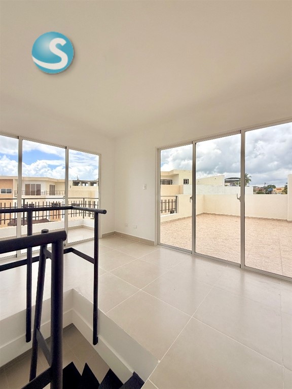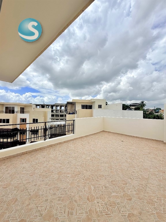 Apartamento de 3 habitaciones a estrenar!! Con terraza propia Av. Prolongación 27, Sto. Dgo. Oeste. CARACTERÍSTICAS GENERALES DE LA PROPIEDAD •3 habitaciones •2.5 baños •Cocina abierta •Balcón •Terraza privada 35 m2 •Sala-comedor corridos •Closet ropa blanca •Área de lavado •2 parqueos TERMINACIONES •Pisos en porcelanato •Cocina modular •Baños modernos 2 niveles 158 m2 SOBRE EL RESIDENCIAL •Garita control acceso •Canchas deportivas •Área infantil •Terraza uso común •Gimnasio equipado •Salon multiusos •Agradables jardines Renta mensual RD$40,000.00 PRECIO INCLUYE: •Mantenimiento INFORMACIÓN ADICIONAL O CITAS AGENTE KEYBROKERS: Carlos Peignand 809•781•8770 [email protected]