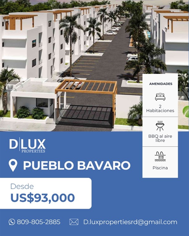 Tu nuevo hogar en Pueblo Bávaro, donde la tranquilidad y la comodidad se encuentran. Apartamentos de 2 habitaciones 2 baños 72 m² de construcción Patio privado en 1er nivel (24 m²) Terraza privada en 3er nivel (45 m²) Área para lavadora y secadora 1 parqueo por apartamento Balcón privado Proyecto familiar con 84 unidades Un espacio diseñado para vivir o invertir en una zona de alto crecimiento.