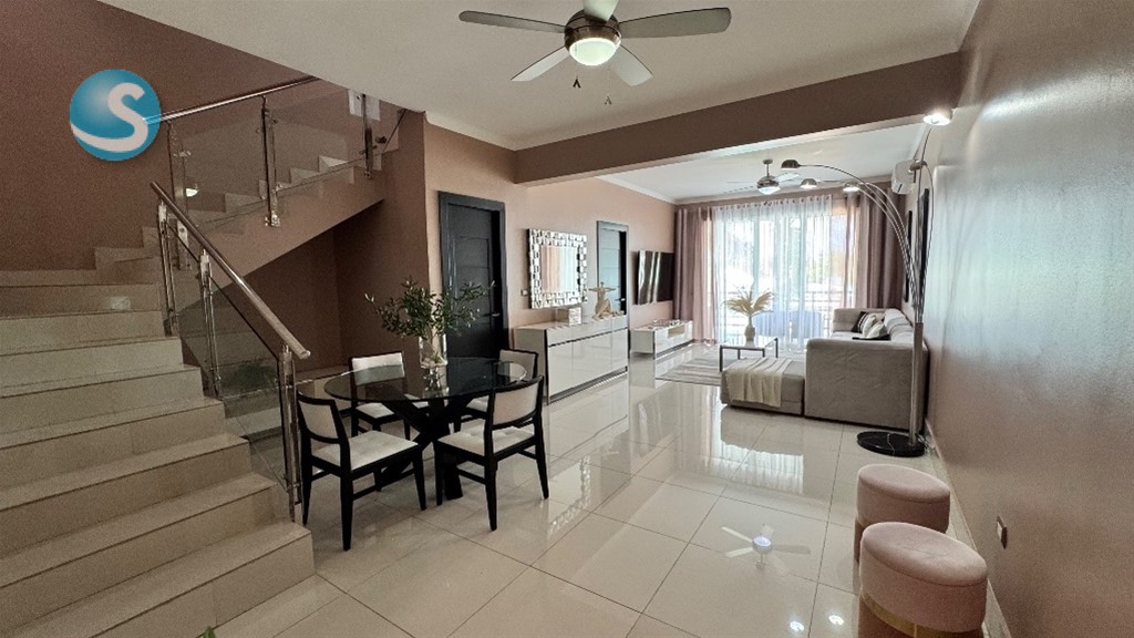 Oportunidad única. ¡Un mes de alquiler de regalo! Penthouse en alquiler totalmente amueblado de dos niveles (320m/2). Punta Cana Village. La mejor ubicación de Punta Cana Village, en la calle Gri-Gri, edificio “Mare”, 3-er y 4-to pisos. En edificio tranquilo, sin vecinos ruidosos, seguro y prestigioso. Un minuto caminando a los bancos Popular, Reservas, Scotiabank, Santa Cruz y López de Haro, clínica Punta Cana Doctors, salones de belleza, guarderías, restaurantes, bares, cafeterías, tiendas, farmacia y ets. Cinco minutos a pie hasta escuela y aeropuerto internacionales Punta Cana. El parqueo y todas las zonas comunes están monitoreando de seguridad 24 horas. Penthouse cuenta con tres habitaciones, cada una con su baño, walking closet, sala de estar, sala de TV, cocina, una terraza techada y dos terrazas abiertas, área de lavado, habitación de servicio, baño de visitas, dos parqueos, gas común sin límite, dos calentadores, Intercom. En las ventanas están instalados Shutters (protección contra fenómenos climáticos) Está totalmente amueblado con mueble moderno y cómodo. Hay mas que todos electrodomésticos: Cinco aires acondicionados, refrigeradora doble, estufa grande, horno grande, lavadora grande, microonda grande, cafetera moderna, cafetera Nespreso, bebedero, Smart TV de 70 pulgadas conectado con Internet, otro TV de 50 pulgadas en habitación, caja fuerte, lavadora, plancha y etc. Mascotas están permitidas. Precio alquiler larga distancia 3,000$ (mantenimiento esta incluido, gas sin limite)