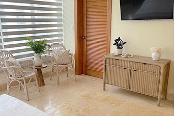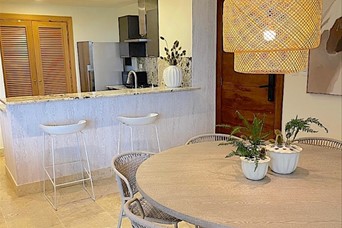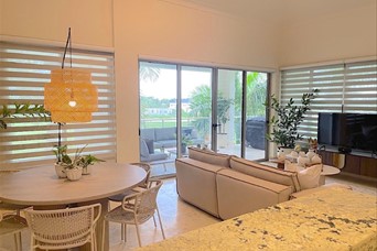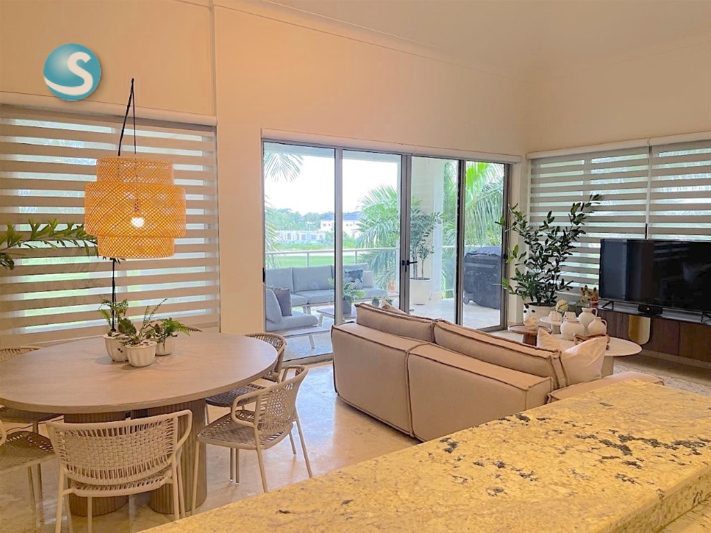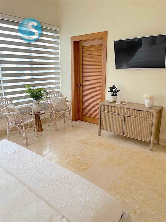 CARACTERISTICA DE COMPLEJO: Edificio de 4 Niveles con 18 apartamentos. Hacienda del Mar en Punta Cana es parte del complejo Punta Cana Resort & Club. ‘ Ofrece a sus residentes y visitantes acceso a la playa, áreas de piscina comunes, hermosos jardines y vista al campo del Golf. Cómodos estacionamientos, Terrazas comunes, Gimnasio, Cancha de Tenis y eventos sociales. Los propietarios también disfrutan del acceso a Punta Cana Beach Club y descuentos atractivos en otros resort y servicios dentro del complejo. Hacienda del Mar está ubicado a muy corta distancia del Campo de Golf LA CANA, de Playa Blanca y del Centro de Tenis Oscar de la Renta. La comunidad a la que pertenece esta unidad te ofrece: ? Piscina privada del complejo ? Cocina Gourmet ? Amplias áreas de estar al aire libre ? Recepción – Vestíbulo ? Zona de Ocio ? Conserjería ? Area de juego infantil ` ? Seguridad permanente ? Parqueos comunes y para propietario ? Elevador CARCTERISTICA DEL APARTAMENTO: ? Apartamento remodelado y completamente amueblado con mobiliario a estrenar y armoniosamente elegido para sus espacios. ? Accesorios, cuadros, cortinas, barbacoa ? Aire acondicionado tipo Fain Coil ? Balcón- Terraza de muy buen tamaño con vista a los jardines y al Campo de Golf ? Cómodos espacios de Sala y Comedor con mobiliario adecuado para el ambiente. ? Cocina Abierta con tope de granito natural y completamente equipada ? Una (1) habitación amplia con su baño y Walk-in closet ? Espacio de lavandería con lavadora y secadora ? Estacionamiento propio para vehículo ? Estacionamiento propio para el carrito de golf ? 3er. nivel ? 95 m2 netos + parqueos PRECIO: US$570,000 Completamente amueblado Año de construcción: 2013 Mantenimiento: US$400.00 + Consumos de electricidad + Agua + Gas ID: EB-TQ9579 https://www.hazimrodriguez.com/property/venta-apartamento-amueblado-punta-cana-resort-amp-club-en-hacienda-del-mar Síguenos en Instagram: https://www.instagram.com/inmobiliariahazimrodriguez/