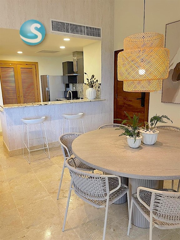 CARACTERISTICA DE COMPLEJO: Edificio de 4 Niveles con 18 apartamentos. Hacienda del Mar en Punta Cana es parte del complejo Punta Cana Resort & Club. ‘ Ofrece a sus residentes y visitantes acceso a la playa, áreas de piscina comunes, hermosos jardines y vista al campo del Golf. Cómodos estacionamientos, Terrazas comunes, Gimnasio, Cancha de Tenis y eventos sociales. Los propietarios también disfrutan del acceso a Punta Cana Beach Club y descuentos atractivos en otros resort y servicios dentro del complejo. Hacienda del Mar está ubicado a muy corta distancia del Campo de Golf LA CANA, de Playa Blanca y del Centro de Tenis Oscar de la Renta. La comunidad a la que pertenece esta unidad te ofrece: ? Piscina privada del complejo ? Cocina Gourmet ? Amplias áreas de estar al aire libre ? Recepción – Vestíbulo ? Zona de Ocio ? Conserjería ? Area de juego infantil ` ? Seguridad permanente ? Parqueos comunes y para propietario ? Elevador CARCTERISTICA DEL APARTAMENTO: ? Apartamento remodelado y completamente amueblado con mobiliario a estrenar y armoniosamente elegido para sus espacios. ? Accesorios, cuadros, cortinas, barbacoa ? Aire acondicionado tipo Fain Coil ? Balcón- Terraza de muy buen tamaño con vista a los jardines y al Campo de Golf ? Cómodos espacios de Sala y Comedor con mobiliario adecuado para el ambiente. ? Cocina Abierta con tope de granito natural y completamente equipada ? Una (1) habitación amplia con su baño y Walk-in closet ? Espacio de lavandería con lavadora y secadora ? Estacionamiento propio para vehículo ? Estacionamiento propio para el carrito de golf ? 3er. nivel ? 95 m2 netos + parqueos PRECIO: US$570,000 Completamente amueblado Año de construcción: 2013 Mantenimiento: US$400.00 + Consumos de electricidad + Agua + Gas ID: EB-TQ9579 https://www.hazimrodriguez.com/property/venta-apartamento-amueblado-punta-cana-resort-amp-club-en-hacienda-del-mar Síguenos en Instagram: https://www.instagram.com/inmobiliariahazimrodriguez/