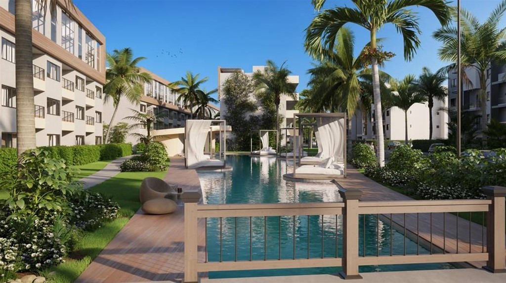 Comunidad residencial de suites, villas y área comercial, diseñada para vivir o invertir cerca de todo en Punta Cana. Combina diseño moderno, jardines amplios y una ubicación estratégica, con un enfoque claro en comodidad, rentabilidad y estilo de vida tipo resort. Tipos de propiedad Apartamentos tipo suite: ideales para equilibrar confort y retorno, a pocos minutos del centro de Punta Cana. Villas: espacios amplios, diseño contemporáneo y áreas verdes para mayor privacidad. Penthouses: distribución en dos niveles y terraza con jacuzzi (opciones de 1 y 2 habitaciones). Plaza/área comercial: servicios a pasos para resolver el día a día con conveniencia. Amenidades que elevan la experiencia (y la demanda de renta) Piscinas, gimnasios, gazebos y solárium, canchas de pádel, transporte a playa, administración hotelera, smart homes, coworking, plaza comercial, bar y restaurante, parque de mascotas, zonas de juego, senderos ecológicos y huerto, además de seguridad privada y línea blanca incluida. Distribuciones destacadas (ejemplos) 1 habitación con swim-up (63.84 m²) y 1 habitación con jacuzzi (51.59 m²). 2 habitaciones con swim-up (91.95 m²) y 2 habitaciones con jacuzzi (74.45 m²). Seguridad para tu inversión Las propiedades están respaldadas por Seguro de Fiel Cumplimiento, aportando tranquilidad y protección del capital durante el proceso de compra. ================================================= A master-planned community of suites, villas, and an on-site commercial area—built for both lifestyle and investment near Punta Cana’s key hubs. It blends modern design, generous gardens, and a strategic location, created to maximize comfort, profitability, and resort-style living. Property types Suite-style apartments: ideal to balance comfort and strong rental potential, minutes from downtown Punta Cana. Villas: spacious layouts, contemporary design, and greenery for privacy and room to breathe. Penthouses: two-level layouts with a terrace featuring a jacuzzi (1BR and 2BR options). On-site commercial plaza: everyday essentials and services just steps away. Amenities that drive lifestyle (and rental demand) Swimming pools, gyms, gazebos & solarium, padel courts, beach shuttle, hotel-style management, smart homes, coworking, commercial plaza, bar & restaurant, pet park, kids’ play areas, eco-trails and an orchard—plus private security and included appliances (white goods). Notable layouts (examples) 1BR swim-up (63.84 m²) and 1BR jacuzzi (51.59 m²). 2BR swim-up (91.95 m²) and 2BR jacuzzi (74.45 m²). Investment peace of mind Units are supported by a Performance Bond (Seguro de Fiel Cumplimiento), adding an extra layer of protection and confidence for buyers.