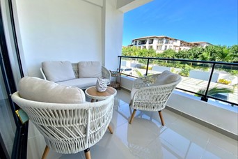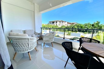 Alquilo apartamento amueblado en Punta Cana 2 habitaciones 2.5 baños Sala Comedor Balcón Área común Piscina Al frente de la Playa bibijagua ??? Precio de Alquiler US$1,400 L.R