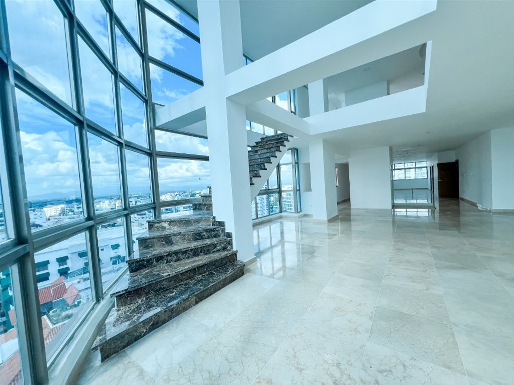 Impresionante PentHouse de tres niveles a pasos del parque Mirador Sur, con ascensor en su interior. Descubre este exclusivo PentHouse de tres niveles, ubicado en una de las zonas más privilegiadas de Santo Domingo, a solo pasos del pulmón verde de la ciudad: el Parque Mirador Sur. Este maravilloso apartamento cuenta con ascensor privado interior que conecta todos sus niveles, comenzando en un primer nivel donde te recibe una impactante vista panorámica de la ciudad y el mar a través de ventanales de cristal. Allí encontrarás dos elegantes salas, uno de sus dos estudios, un baño de visitas, y una cocina fría y caliente con acabados de primera. Una imponente escalera de diseño curvo te conduce al área íntima, donde cada habitación dispone de baño privado y walk-in closet. Además, el apartamento ofrece dos family rooms con espacios abiertos que invitan al confort y la conexión familiar. En el tercer nivel te espera una terraza privada con preinstalación para jacuzzi, ideal para relajarte mientras disfrutas de una vista 360 inigualable a la ciudad, el mar y sus entornos naturales. La torre se encuentra en un lugar residencial muy tranquilo, con fácil acceso a supermercados, avenidas principales, clínicas y centros comerciales, lo que garantiza una vida urbana con el equilibrio perfecto entre naturaleza, exclusividad y conveniencia. Leidy Tejada +1 829-279-0950