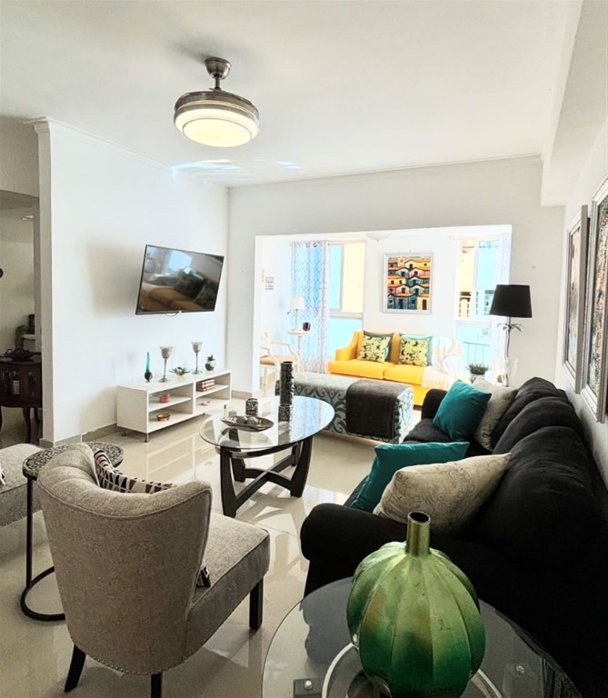 Venta en en exclusivo sector de Renacimiento Piso 4 141 mts 2 habitaciones 2.5 baños Sala Comedor Desayunador Estar familiar Cocina Balcón integrado Área de lavado 2 parqueos paralelos y techados Terminaciones Pisos en Porcelanato Madera preciosa Jambas Tope de cocina en granito Amenidades Portón eléctrico Ascensor Luz 24 hrs Cámaras de seguridad Planta full Lobby Precio de venta RD$12,300,000