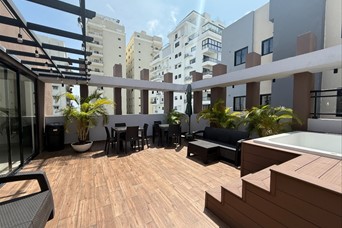 Apartamento en Venta – Urbanización Real Disfruta de un espacioso apartamento de 136 m² (109 m² netos) con 2 habitaciones, cada una con su baño privado. La habitación principal incluye un walk-in closet. El apartamento cuenta con un baño de visitas, cocina abierta, sala, balcón automatizado, área de lavado y una habitación de servicio con baño. Incluye 2 amplios parqueos paralelos y preinstalación de aire en todas las áreas. Características de la torre: Lobby climatizado Ascensor de última generación Área social techada/destechada con jacuzzi y BBQ Gimnasio Planta eléctrica completa Gas común Escalera de emergencia Ideal para quienes buscan confort y modernidad en una ubicación privilegiada.