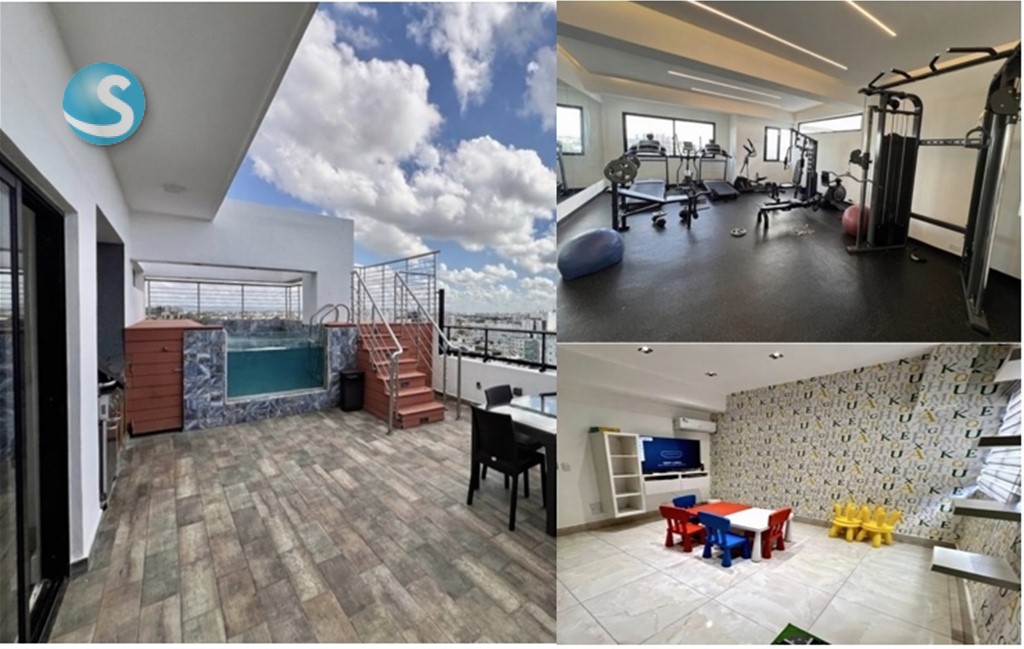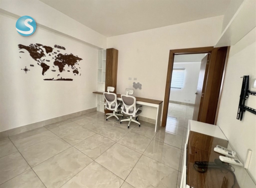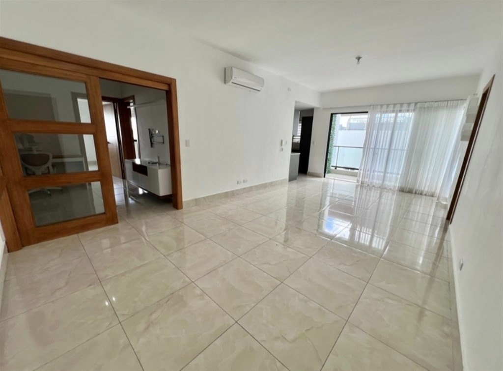 Amplio y completo apartamento con excelente ubicación en Renacimiento a pocas calles del parque Mirador Sur, en un sector familiar y acogedor. Incluye toda la línea blanca. Piso 7 125 mts2 netos 2 habitaciones 2.5 baños Estudio Balcón Área de lavado Cuarto de servicio 2 parqueos Incluye línea blanca Torre moderna con 2 ascensores, planta full, lobby y área social con terraza, jacuzzi, gimnasio y área para niños. Para mas información comunicarse con: Paula Morales Whatsapp: 809-3034328