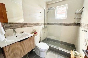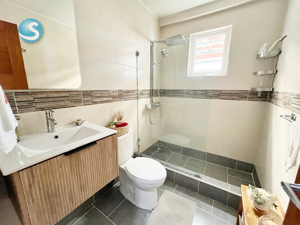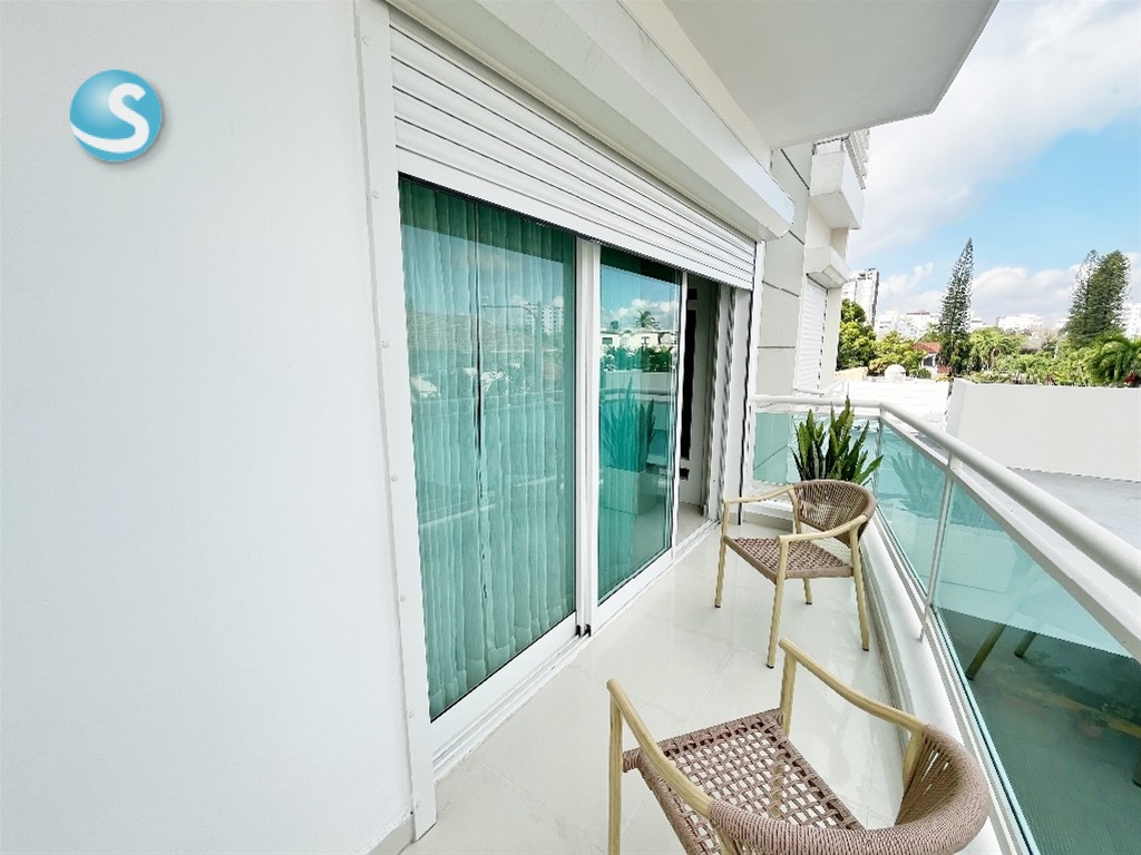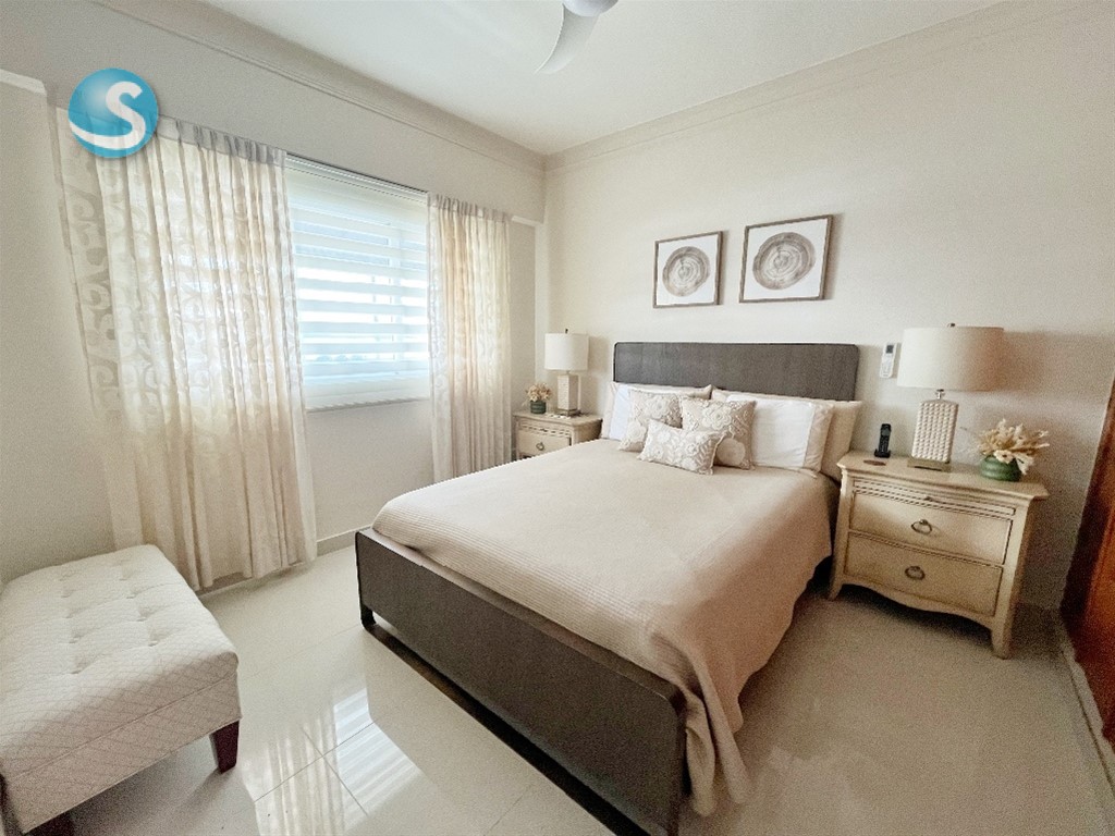 Características: -206mt2 neto + 50mt2 de terraza -Aires acondicionados y blackouts incluidos -Shutters y alarma incluidos -2 apartamentos por piso (14 familias total) -3 habitaciones (2 con WC) -3.5 Baños -Cocina cerrada totalmente remodelada -Amplia Sala -Comedor -Estudio cerrado -Estar familiar -Balcón con vista al frente -Terraza techada -Área de lavado -Cuarto de servicio -3 parqueos -Locker -Escalera de emergencia Características de la Torre: -Lobby amueblado -Ascensor -Gimnasio -Planta Eléctrica Full -Gas común -Intercom -Portero -Portón eléctrico -Seguridad 24 Horas Mantenimiento: RD$ 16,000 Precio: US$ 415,000
