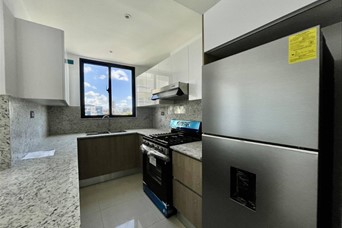 Apartamento a estrenar en Renacimiento próximo a la Avenida Enriquillo Piso 4 Línea blanca incluida 4 apartamentos por piso 2 habitaciones 2.5 baños Sala - Comedor Cocina Área de lavado 2 parqueo Amenidades Parqueos de visita Gimnasio Jacuzzi Terraza amueblada con BBQ Salón de TV Precio de alquiler USD$1,300 mantenimiento y gas incluido Información Ariana Estaba 829-929-4899 EMM. B.