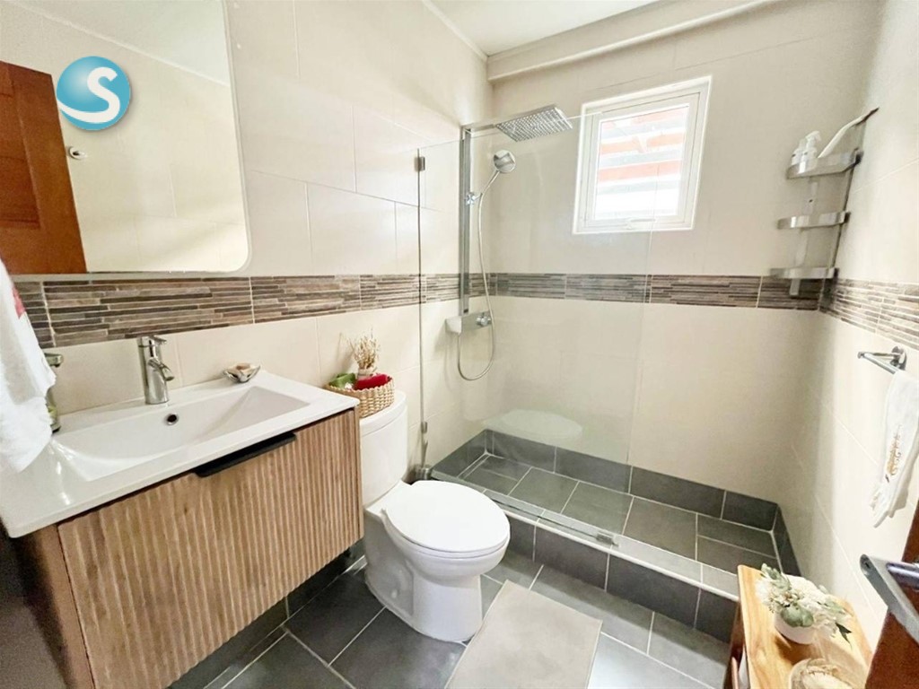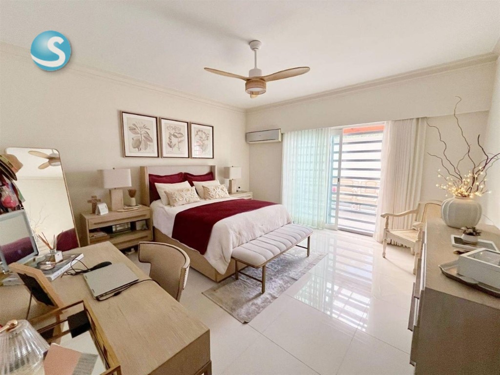 Moderno y amplio apartamento con terraza en Renacimiento Características 206mt2 neto + 50mt2 de terraza Aires acondicionados y blackouts incluidos Shutters y alarma incluidos 2 apartamentos por piso (14 familias total) 3 habitaciones (2 con WC) 3.5 Baños Cocina cerrada totalmente remodelada Amplia Sala Comedor Estudio cerrado Estar familiar Balcón con vista al frente Terraza techada Área de lavado Cuarto de servicio 3 parqueos Locker Escalera de emergencia Características de la Torre: Lobby amueblado Ascensor Gimnasio Planta Eléctrica Full Gas común Intercom Portero Portón eléctrico Seguridad 24 Horas Mantenimiento: RD$ 16,000 Precio: US$ 415,000