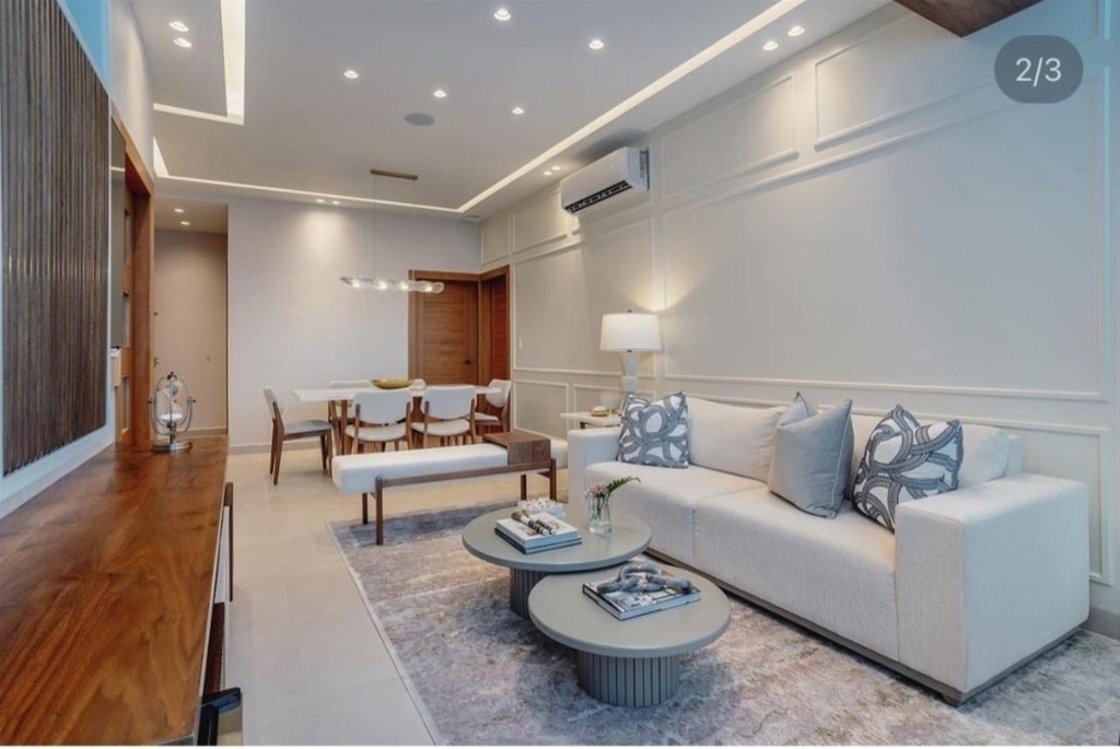 Atemporal y hermoso apartamento ubicado en el sector de Renacimiento. 122Mts totales 100 Mts netos Dos (2) habitaciones Habitación principal con walk-in clóset 2.5 baños Sala Comedor Cocina cerrada Área de lavado (3) parqueos paralelos * ??Residencial familiar * ??Solo 11 apartamentos en total Shutter en todo el apartamento. Precio de venta : US$ 235,000. Amueblado : US$ 255,000 Mantenimiento: RD$ 7,200.