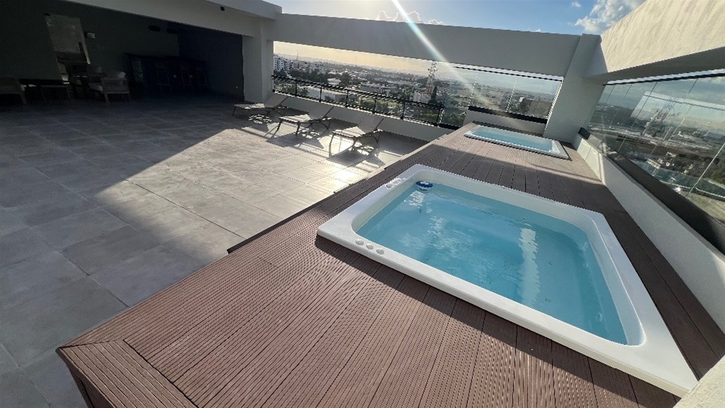 Alquilo para estrenar disponible desde 20 de diciembre 2 habitaciones con su baño más medio baño de visita y un parqueo techado Características Generales • Lobby de entrada amueblado • Área social tipo Rooftop techada y destechada con 2 jacuzzi y bbq. • Área infantil • Gimnasio • Salón Lounge • Working Space • Ascensor de última generación • Planta full • Sistema de cámaras de seguridad • Pozo tubular • Gas común • Control de acceso • Sistema contra incendio Terminaciones de los Apartamentos • Pisos en porcelanato • Cocinas modulares con desayunador • Tope de cocina en granito con backsplash • Puertas y closets en madera preciosa • Grifería importada • Muebles de baños • Pre-instalación de aires acondicionados en habitaciones • Calentadores de gas