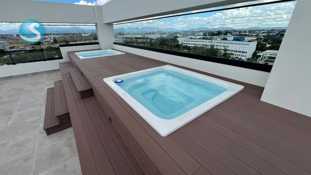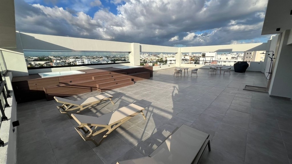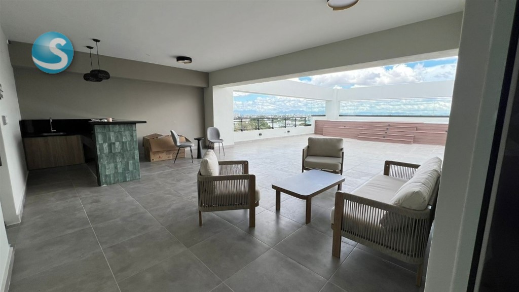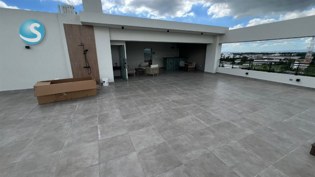 Características Generales • Lobby de entrada amueblado • Área social tipo Rooftop techada y destechada con 2 jacuzzi y bbq. • Área infantil • Gimnasio • Salón Lounge • Working Space • Ascensor de última generación • Planta full • Sistema de cámaras de seguridad • Pozo tubular • Gas común • Control de acceso • Sistema contra incendio Terminaciones de los Apartamentos • Pisos en porcelanato • Cocinas modulares con desayunador • Tope de cocina en granito con backsplash • Puertas y closets en madera preciosa • Grifería importada • Muebles de baños • Pre-instalación de aires acondicionados en habitaciones • Calentadores de gas Los parqueos son dos niveles: Semisótano y piso 1