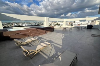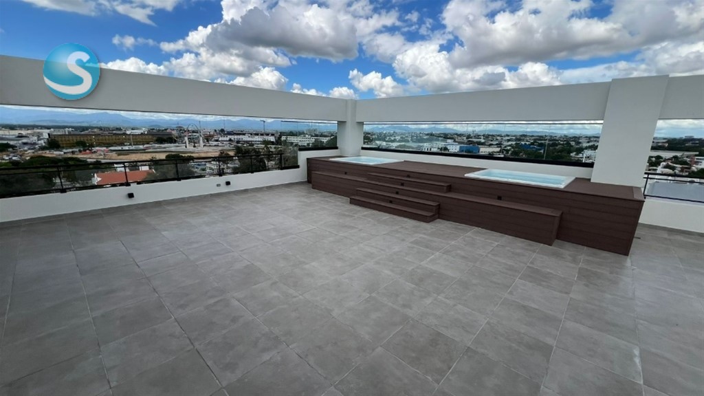 Características Generales • Lobby de entrada amueblado • Área social tipo Rooftop techada y destechada con 2 jacuzzi y bbq. • Área infantil • Gimnasio • Salón Lounge • Working Space • Ascensor de última generación • Planta full • Sistema de cámaras de seguridad • Pozo tubular • Gas común • Control de acceso • Sistema contra incendio Terminaciones de los Apartamentos • Pisos en porcelanato • Cocinas modulares con desayunador • Tope de cocina en granito con backsplash • Puertas y closets en madera preciosa • Grifería importada • Muebles de baños • Pre-instalación de aires acondicionados en habitaciones • Calentadores de gas Los parqueos son dos niveles: Semisótano y piso 1