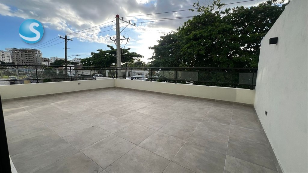 Características Generales • Lobby de entrada amueblado • Área social tipo Rooftop techada y destechada con 2 jacuzzi y bbq. • Área infantil • Gimnasio • Salón Lounge • Working Space • Ascensor de última generación • Planta full • Sistema de cámaras de seguridad • Pozo tubular • Gas común • Control de acceso • Sistema contra incendio Terminaciones de los Apartamentos • Pisos en porcelanato • Cocinas modulares con desayunador • Tope de cocina en granito con backsplash • Puertas y closets en madera preciosa • Grifería importada • Muebles de baños • Pre-instalación de aires acondicionados en habitaciones • Calentadores de gas Entrega 20 de Diciembre